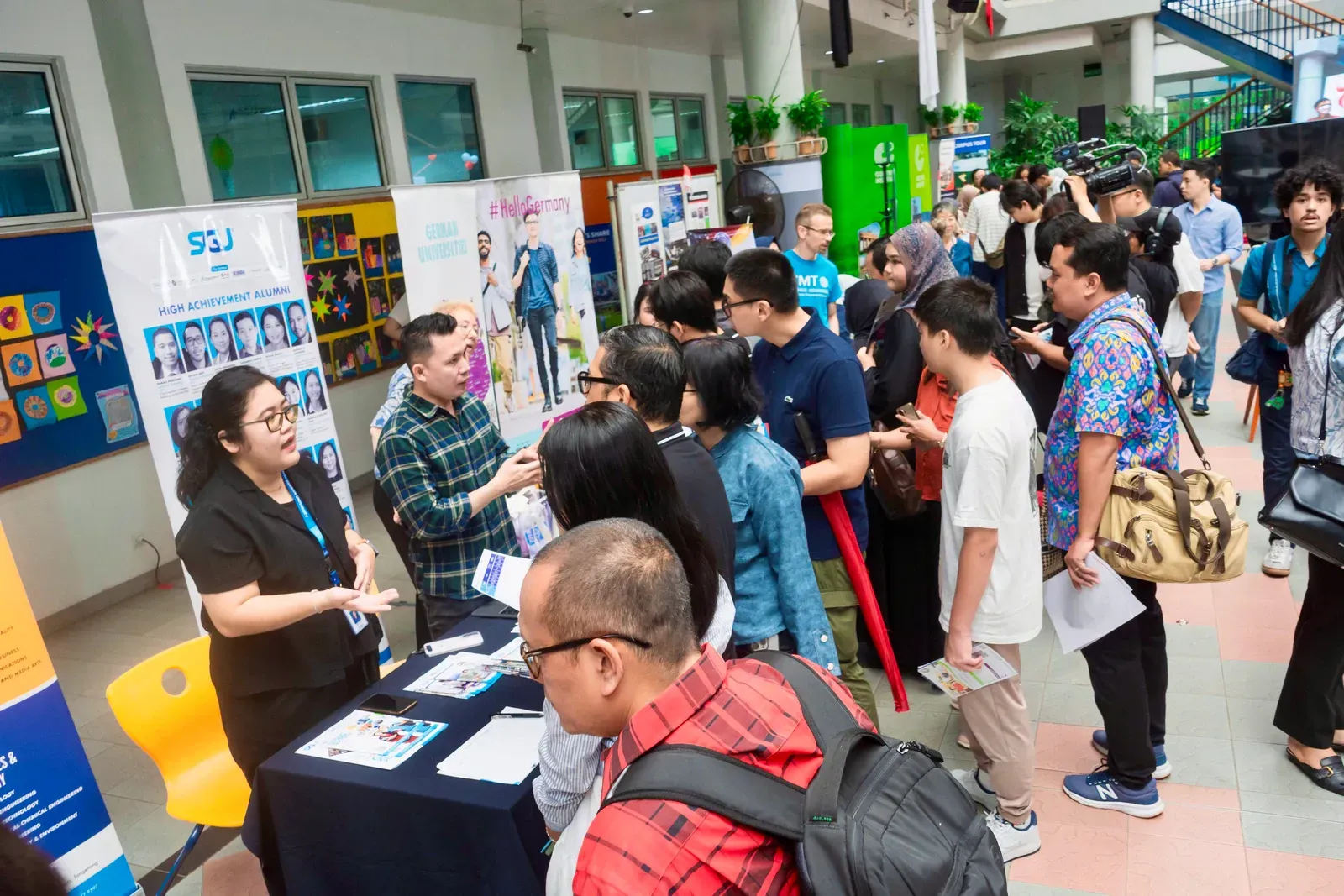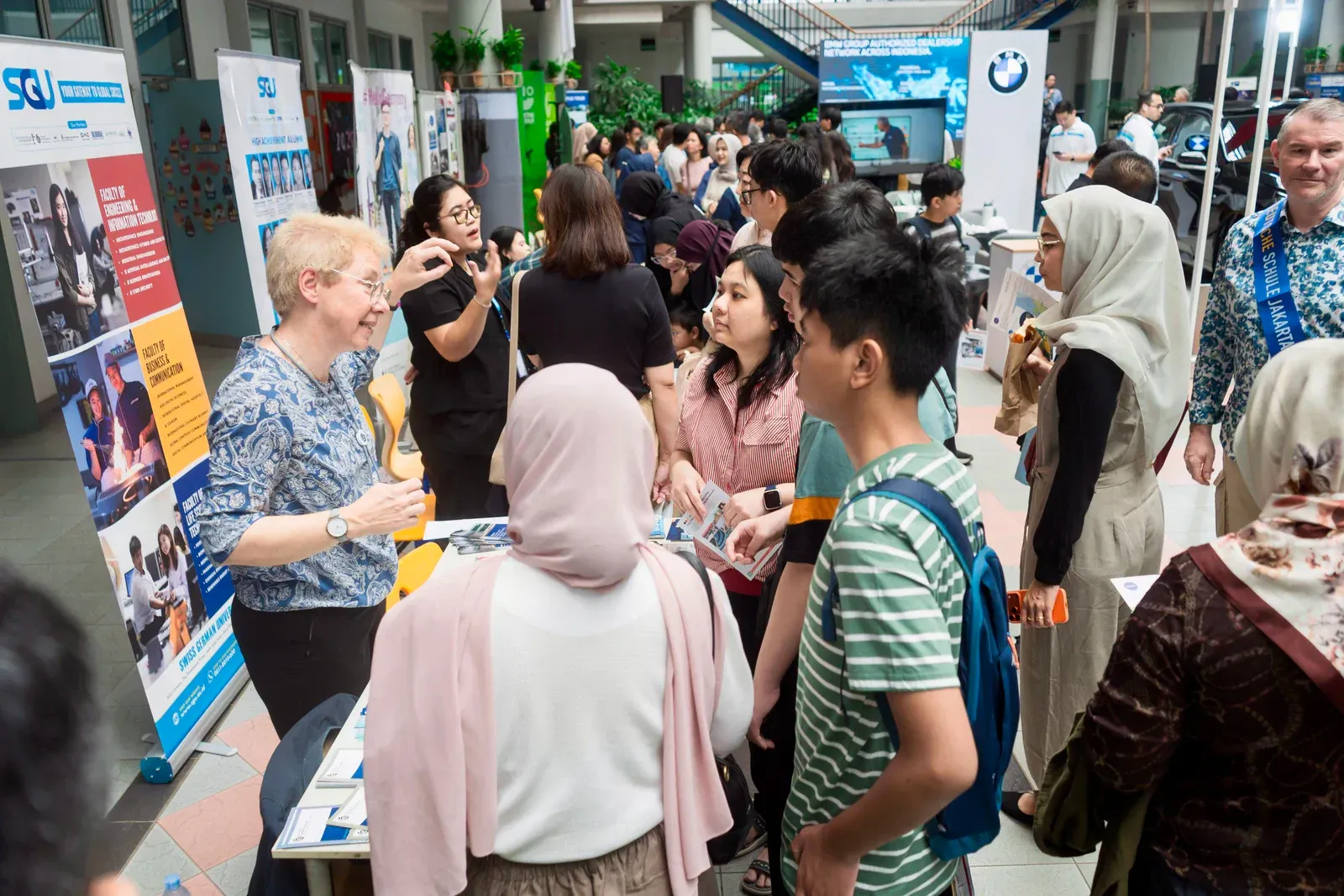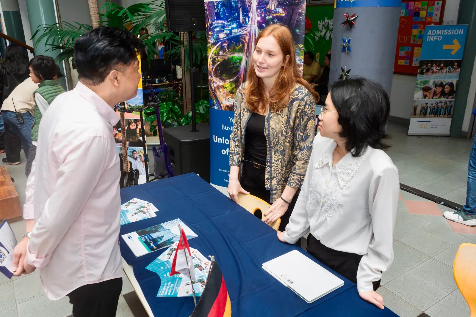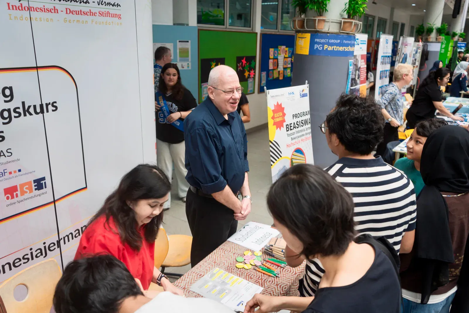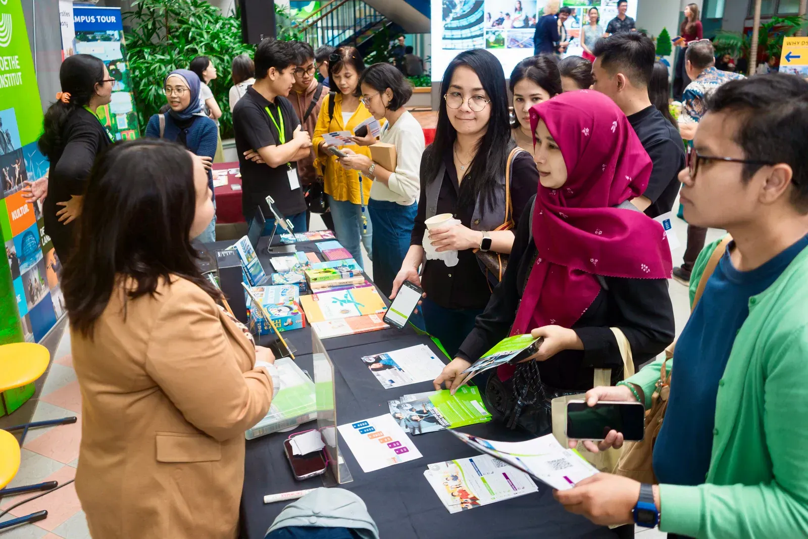 Am Vormittag verwandelte sich der Campus der DSJ in einen lebendigen Marketplace of Opportunity. Bildungseinrichtungen wie der DAAD, das Goethe-Institut, Studienkolleg Indonesien, die Swiss-German University, die Deutsch-Indonesische Industrie- und Handelskammer AHK–EKONID, die GIZ sowie Vertreter deutscher Hochschulen standen für persönliche Gespräche zur Verfügung.