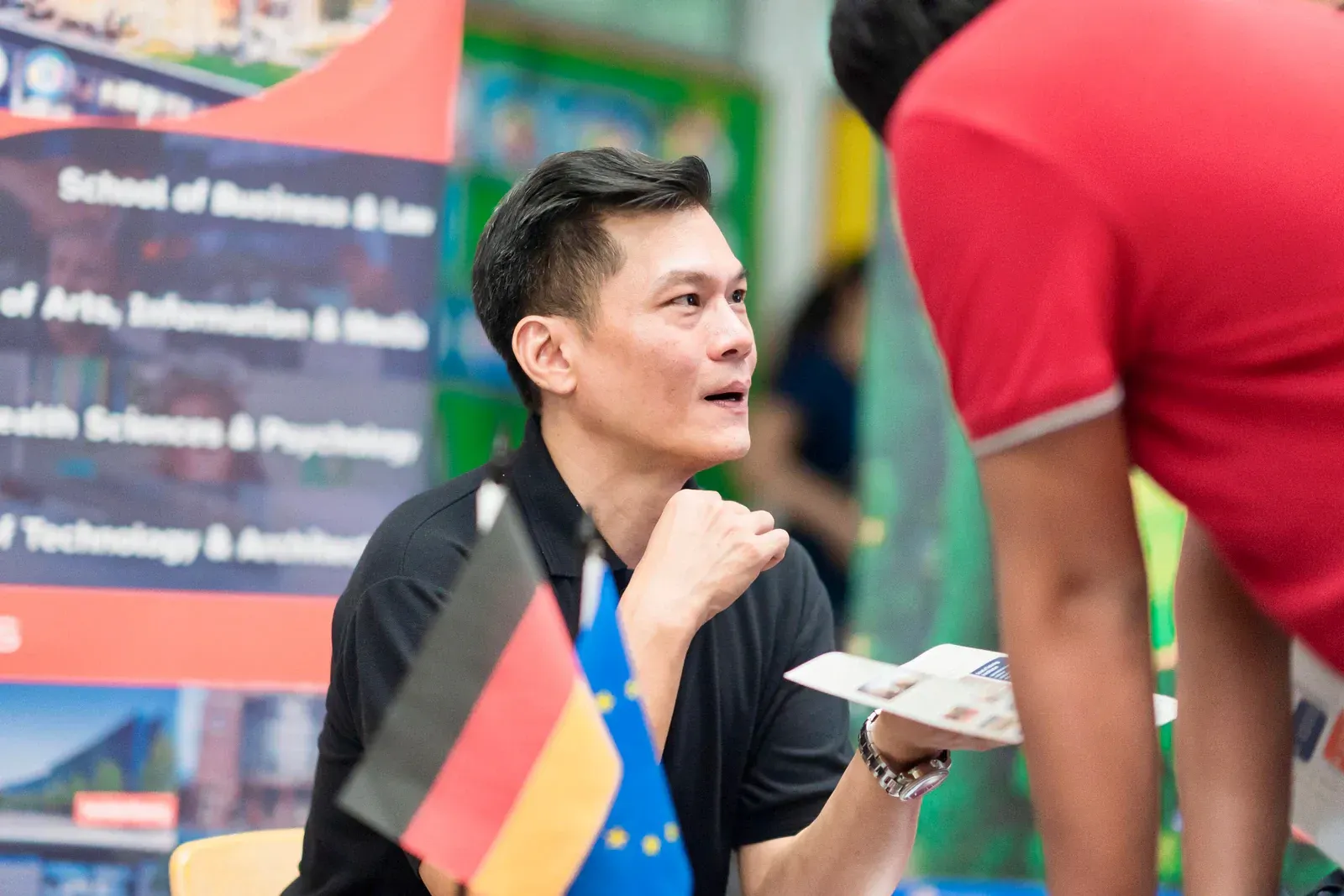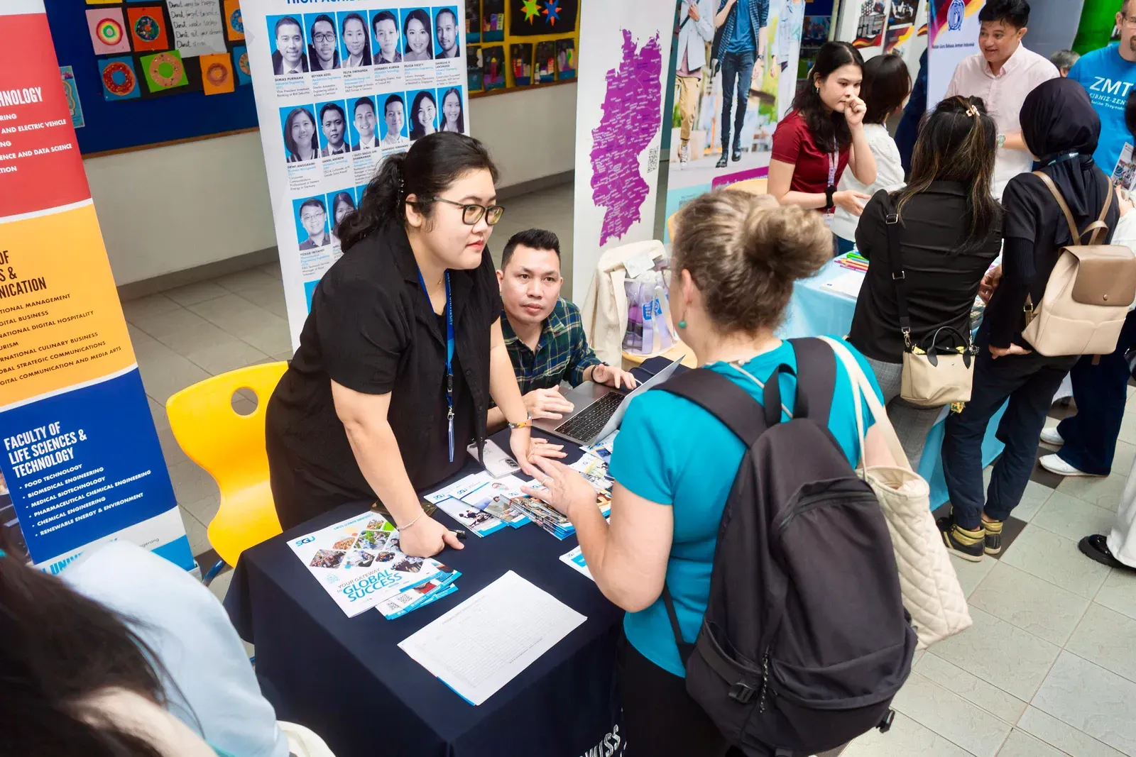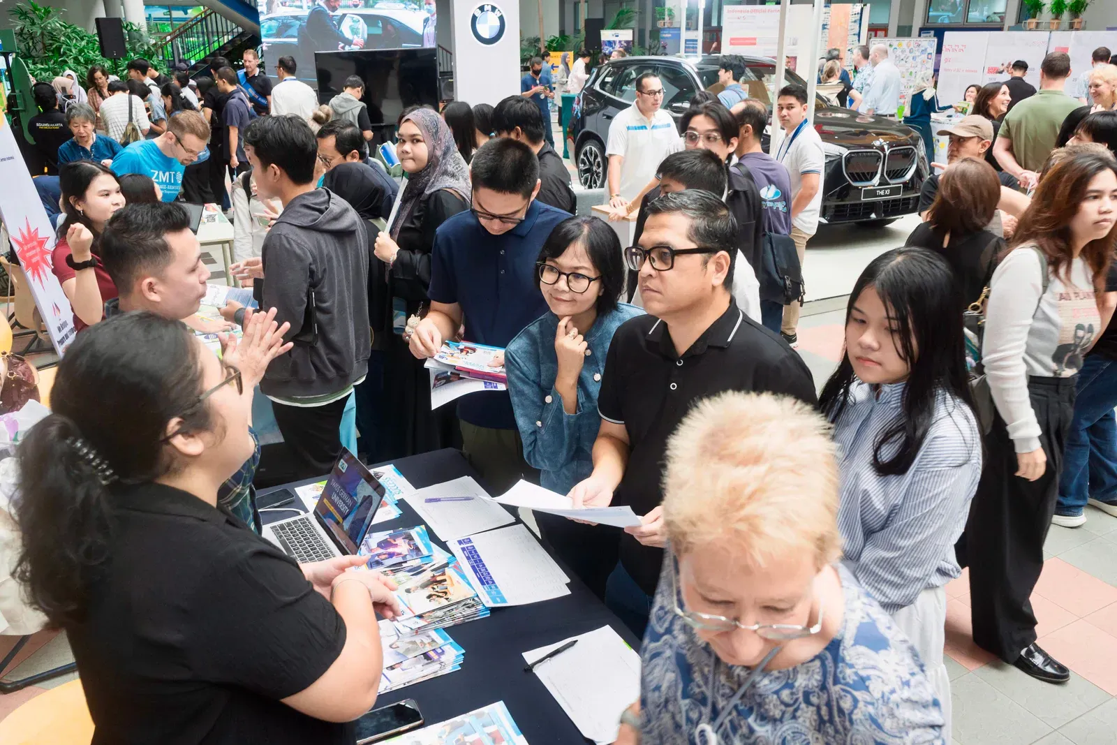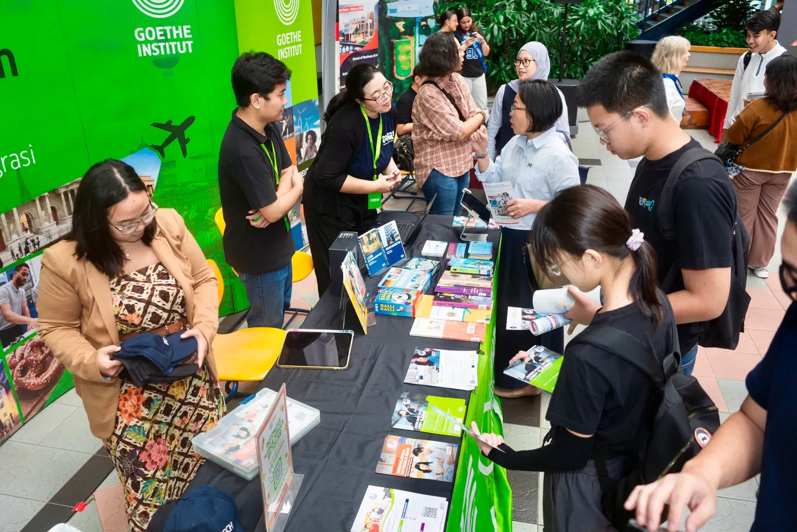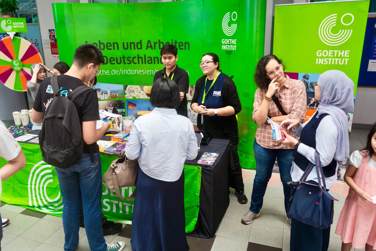 Am Vormittag verwandelte sich der Campus der DSJ in einen lebendigen Marketplace of Opportunity. Bildungseinrichtungen wie der DAAD, das Goethe-Institut, Studienkolleg Indonesien, die Swiss-German University, die Deutsch-Indonesische Industrie- und Handelskammer AHK–EKONID, die GIZ sowie Vertreter deutscher Hochschulen standen für persönliche Gespräche zur Verfügung.