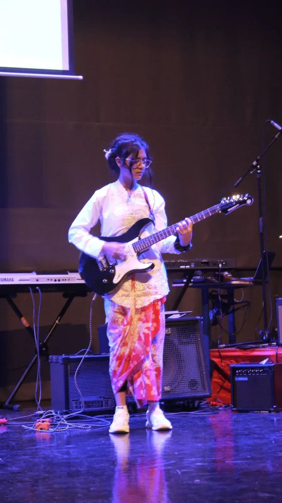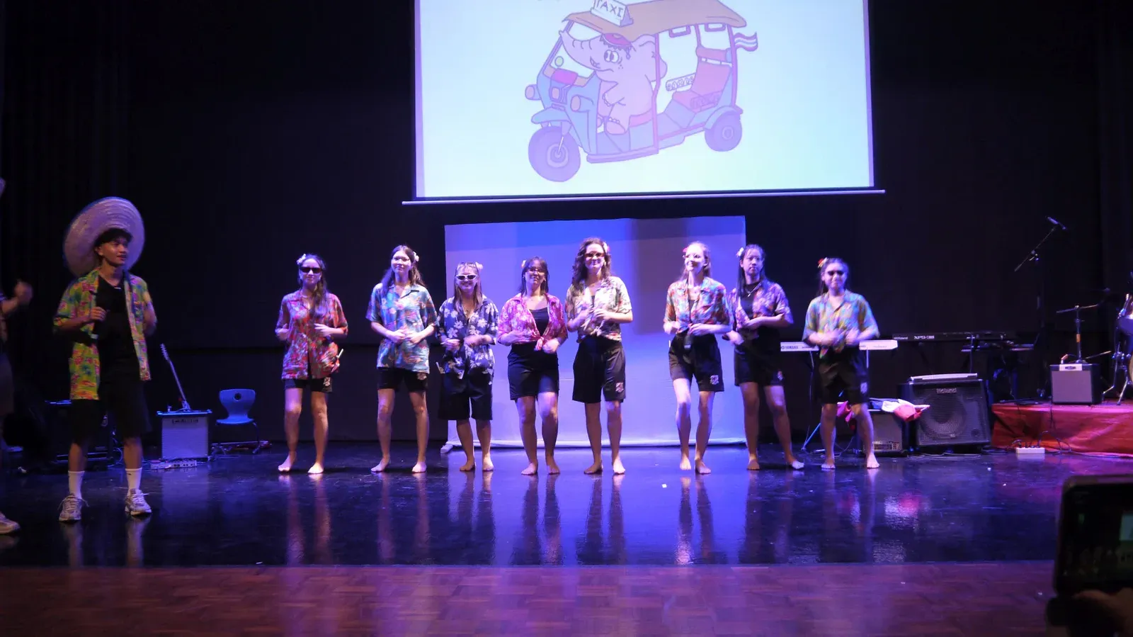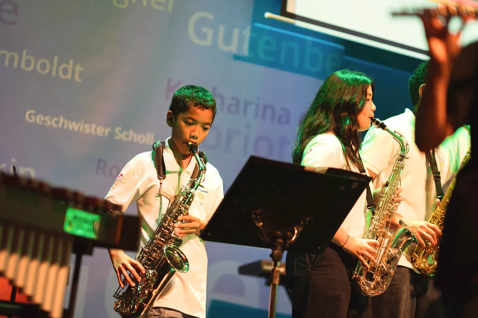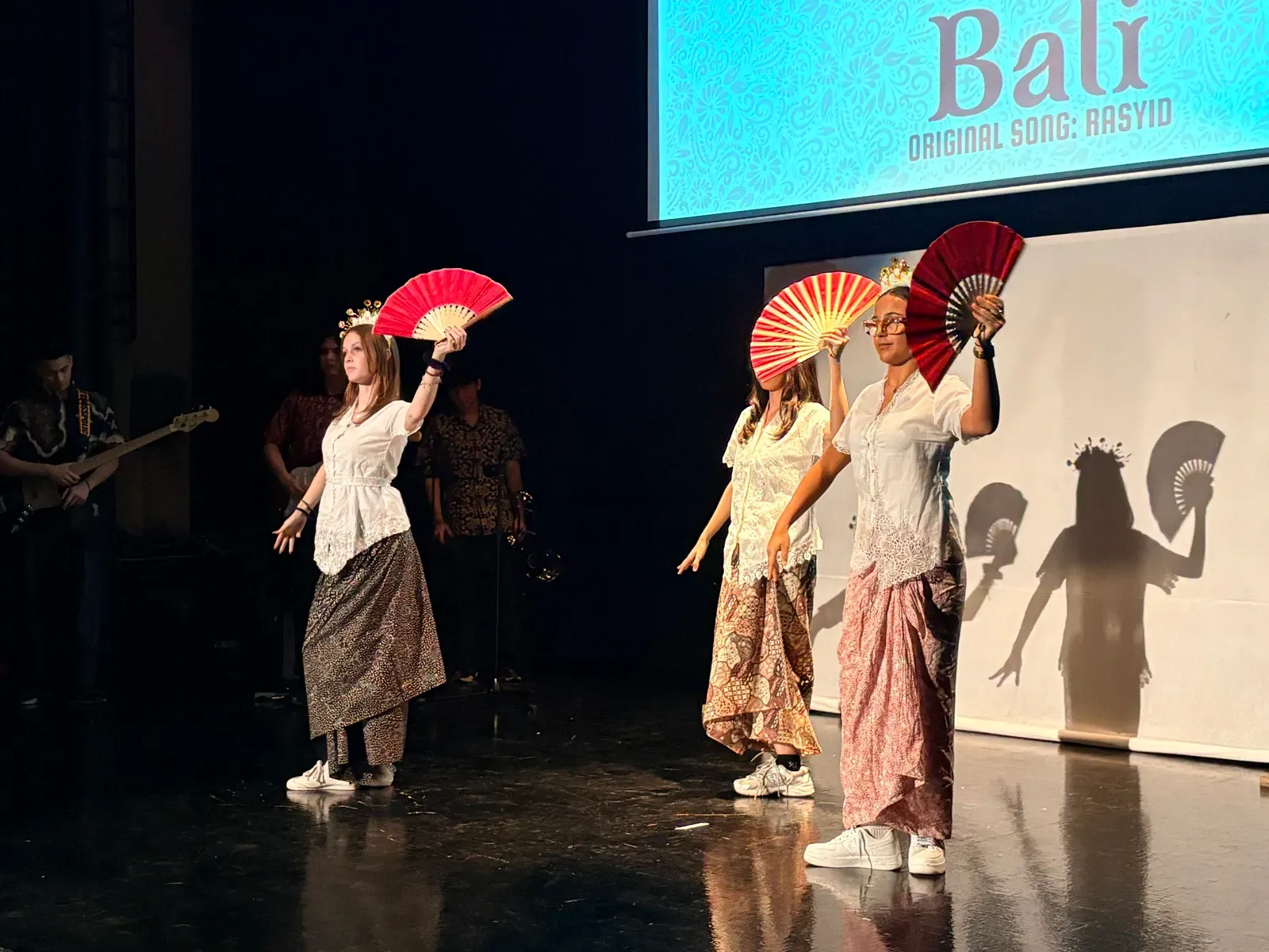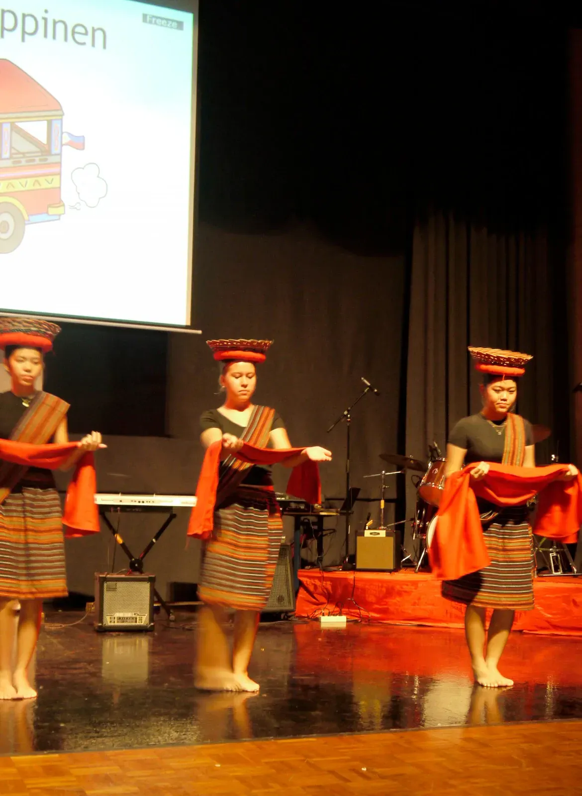 Auch der Titel „We Will Rock You“ wurde gespielt und es gab ein phantastisches Solo. Der Workshop “Tinikling” zeigte einen traditionellen Tanz von den Philippinen, bei dem Rhythmus und Bewegung harmonisch zusammenpassen. Der “Movement Fusion Workshop” bestand hingegen einen ruhigen Tanz mit fließenden Bewegungen und einem beeindruckenden Flow. Im “Anklung Workshop” wurden verschiedene Lieder gespielt, zum Beispiel „Balonku ada lima“. Dies wurde vorab von den Schülern perfekt einstudiert. Das “Randai Projekt” zeigte eine Mischung aus Tanz und Theater mit einer kleinen Geschichte in einer abenteuerlichen Stimmung. Der Workshop “Hip-Hop & House Dance” war wieder sehr energiegeladen mit vielen schnellen und teils artistischen Bewegungen zur Musik. Beim “Minimal Music” war die Musik ruhig und langsam. Es wurden Instrumente wie Xylophon, Bass, Keyboard und Trommeln benutzt und das Stück wurde langsam und spannungsvoll aufgebaut. Der Workshop “Standing in the Eyes of the World” zeigte eine beeindruckende Geschichte mit integrativer Musik und Theater.Beim “Interkulturellen Ensemble” wurde europäische Musik mit indonesischen Instrumenten, wie dem Anklung, neu gemischt und dargestellt.