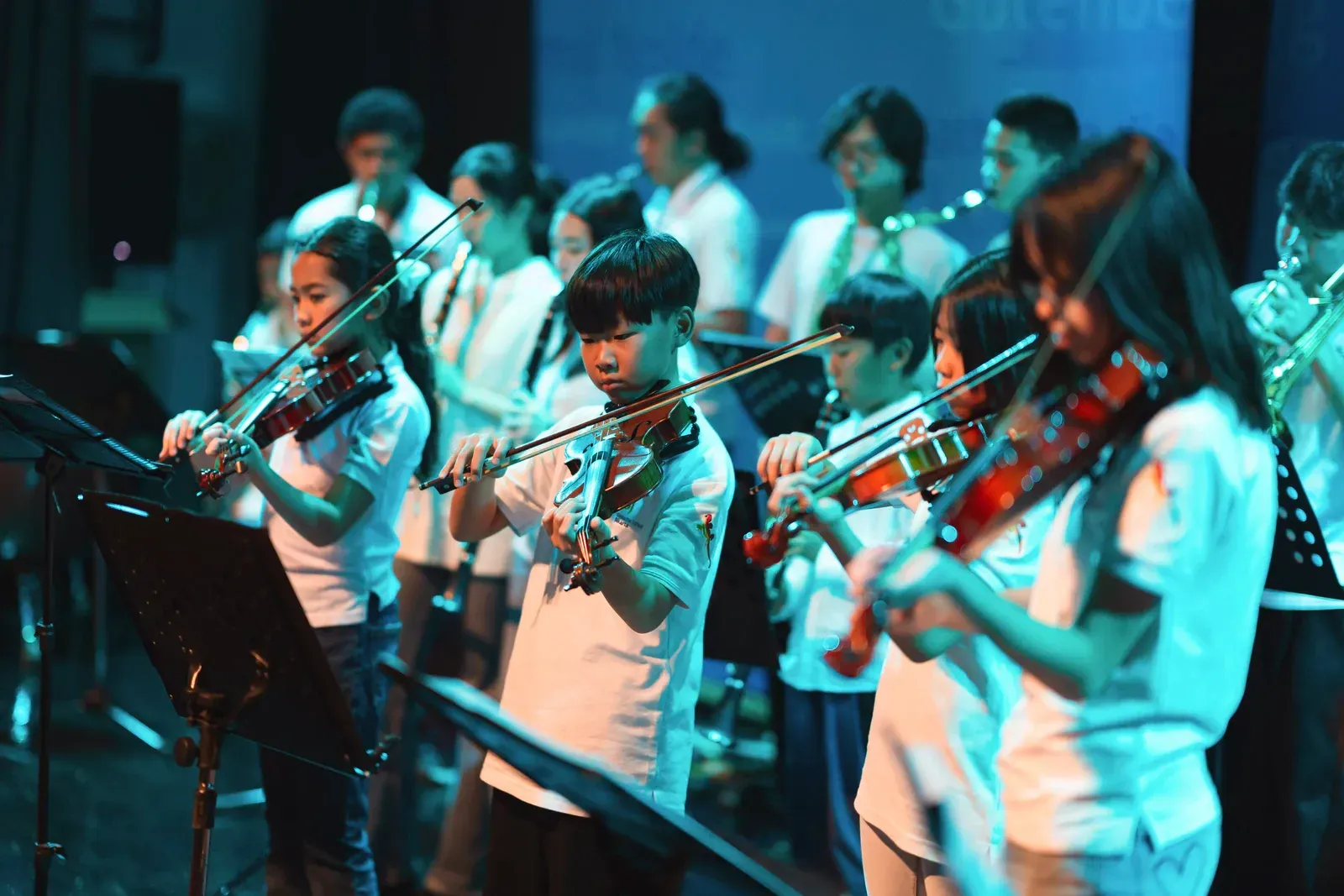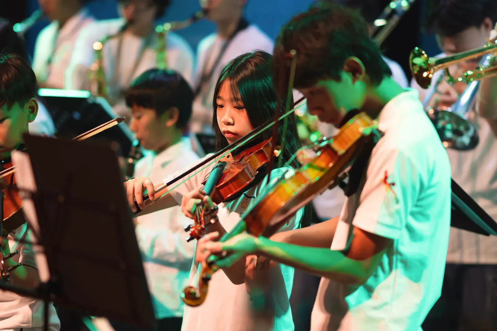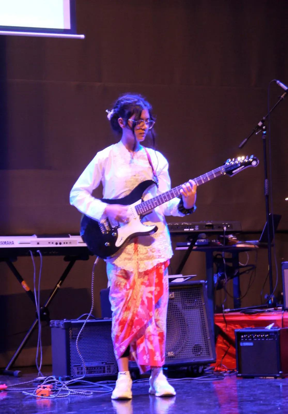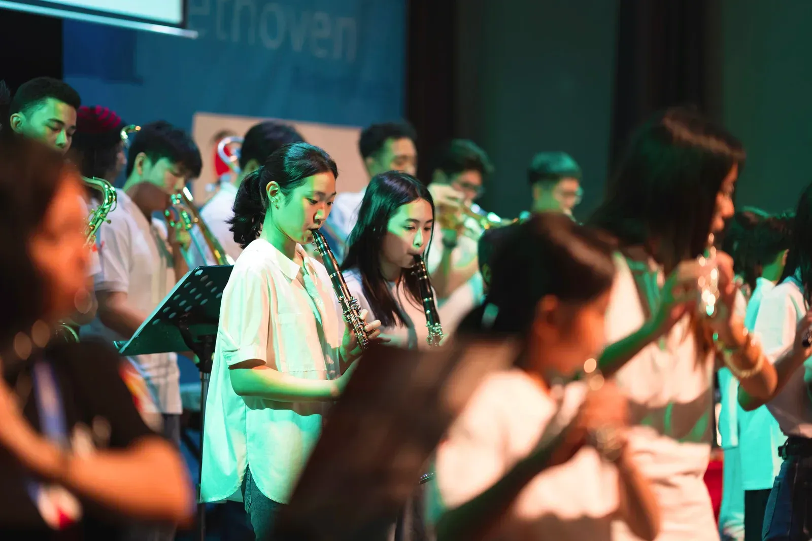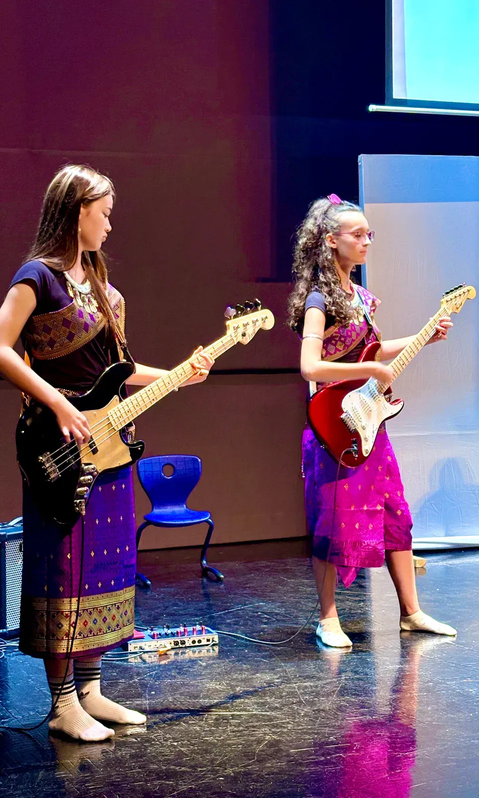 Auch der Titel „We Will Rock You“ wurde gespielt und es gab ein phantastisches Solo. Der Workshop “Tinikling” zeigte einen traditionellen Tanz von den Philippinen, bei dem Rhythmus und Bewegung harmonisch zusammenpassen. Der “Movement Fusion Workshop” bestand hingegen einen ruhigen Tanz mit fließenden Bewegungen und einem beeindruckenden Flow. Im “Anklung Workshop” wurden verschiedene Lieder gespielt, zum Beispiel „Balonku ada lima“. Dies wurde vorab von den Schülern perfekt einstudiert. Das “Randai Projekt” zeigte eine Mischung aus Tanz und Theater mit einer kleinen Geschichte in einer abenteuerlichen Stimmung. Der Workshop “Hip-Hop & House Dance” war wieder sehr energiegeladen mit vielen schnellen und teils artistischen Bewegungen zur Musik. Beim “Minimal Music” war die Musik ruhig und langsam. Es wurden Instrumente wie Xylophon, Bass, Keyboard und Trommeln benutzt und das Stück wurde langsam und spannungsvoll aufgebaut. Der Workshop “Standing in the Eyes of the World” zeigte eine beeindruckende Geschichte mit integrativer Musik und Theater.Beim “Interkulturellen Ensemble” wurde europäische Musik mit indonesischen Instrumenten, wie dem Anklung, neu gemischt und dargestellt.