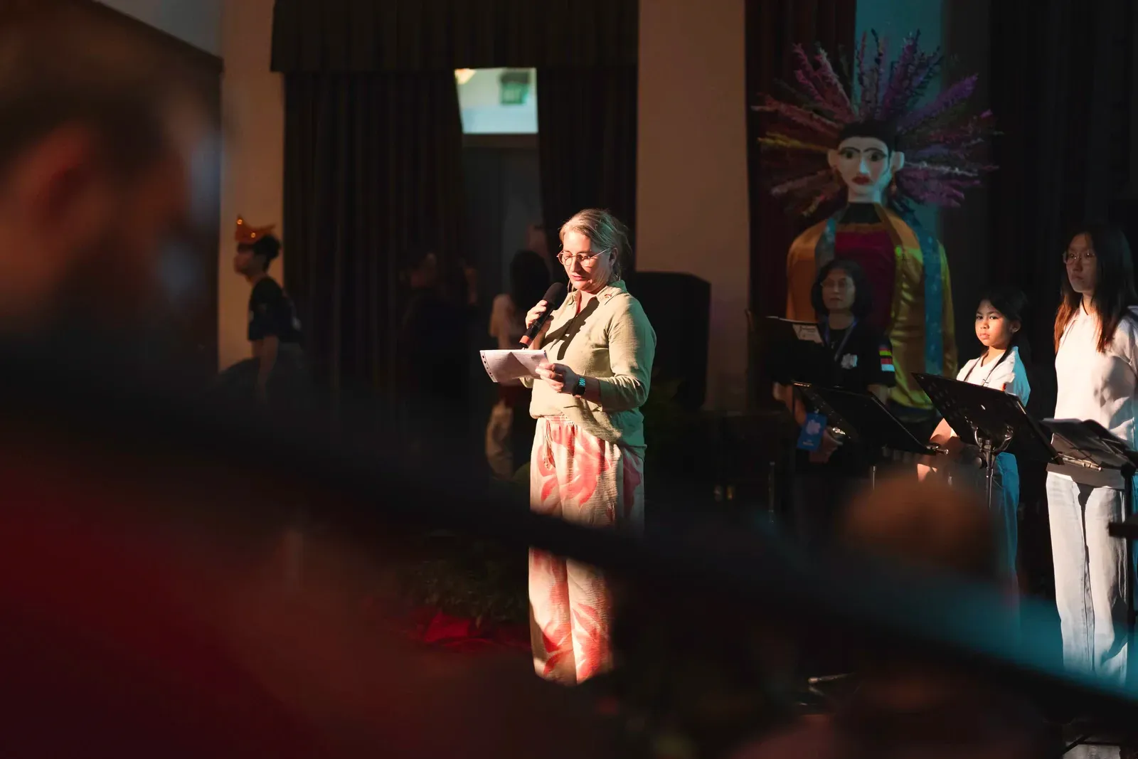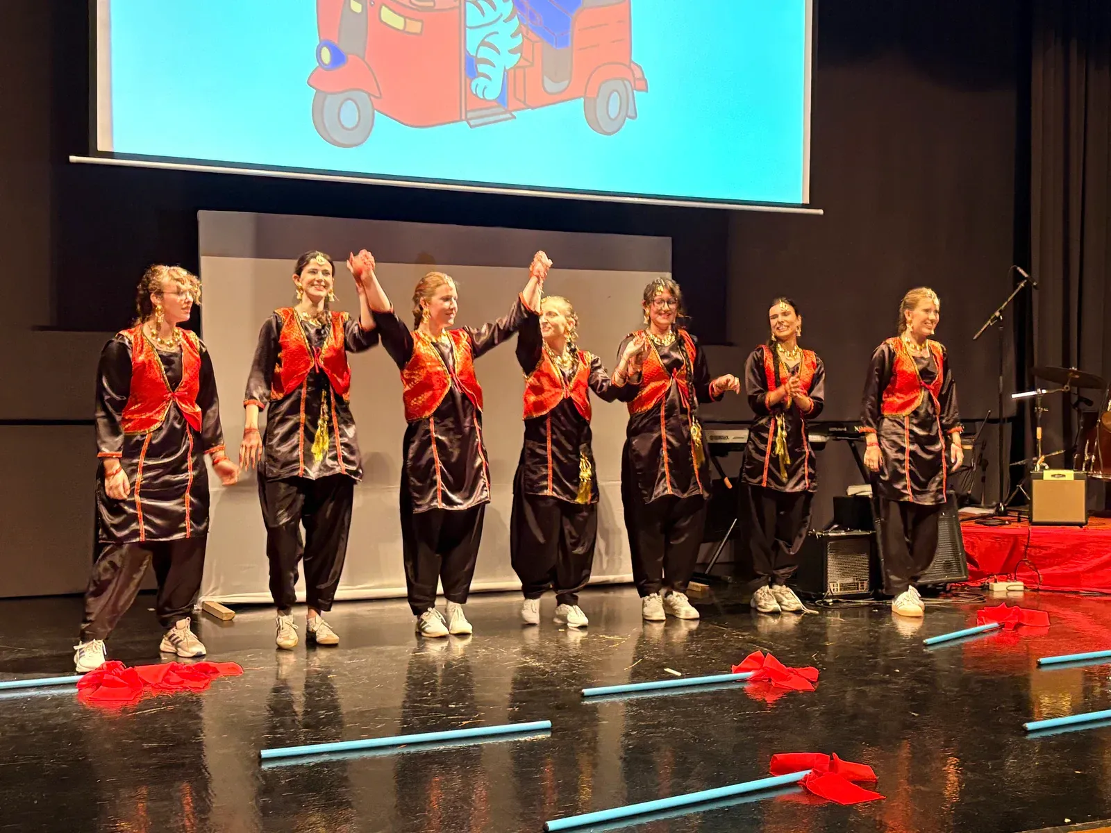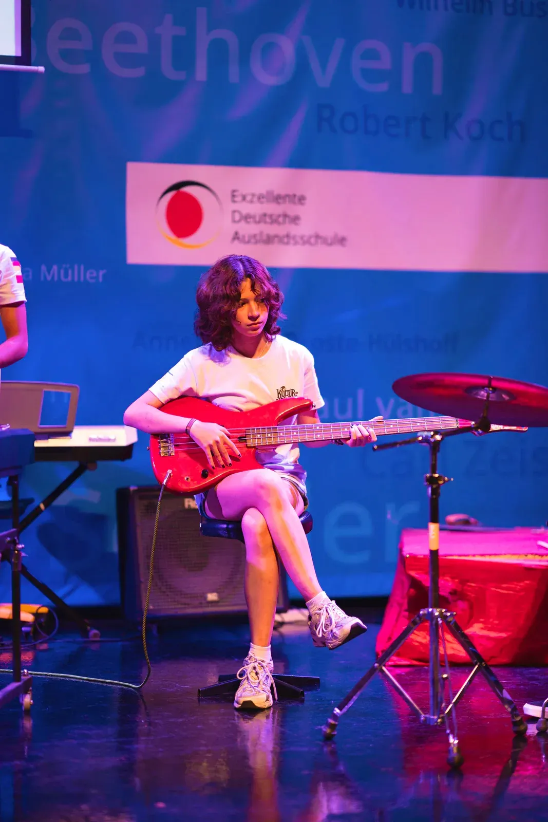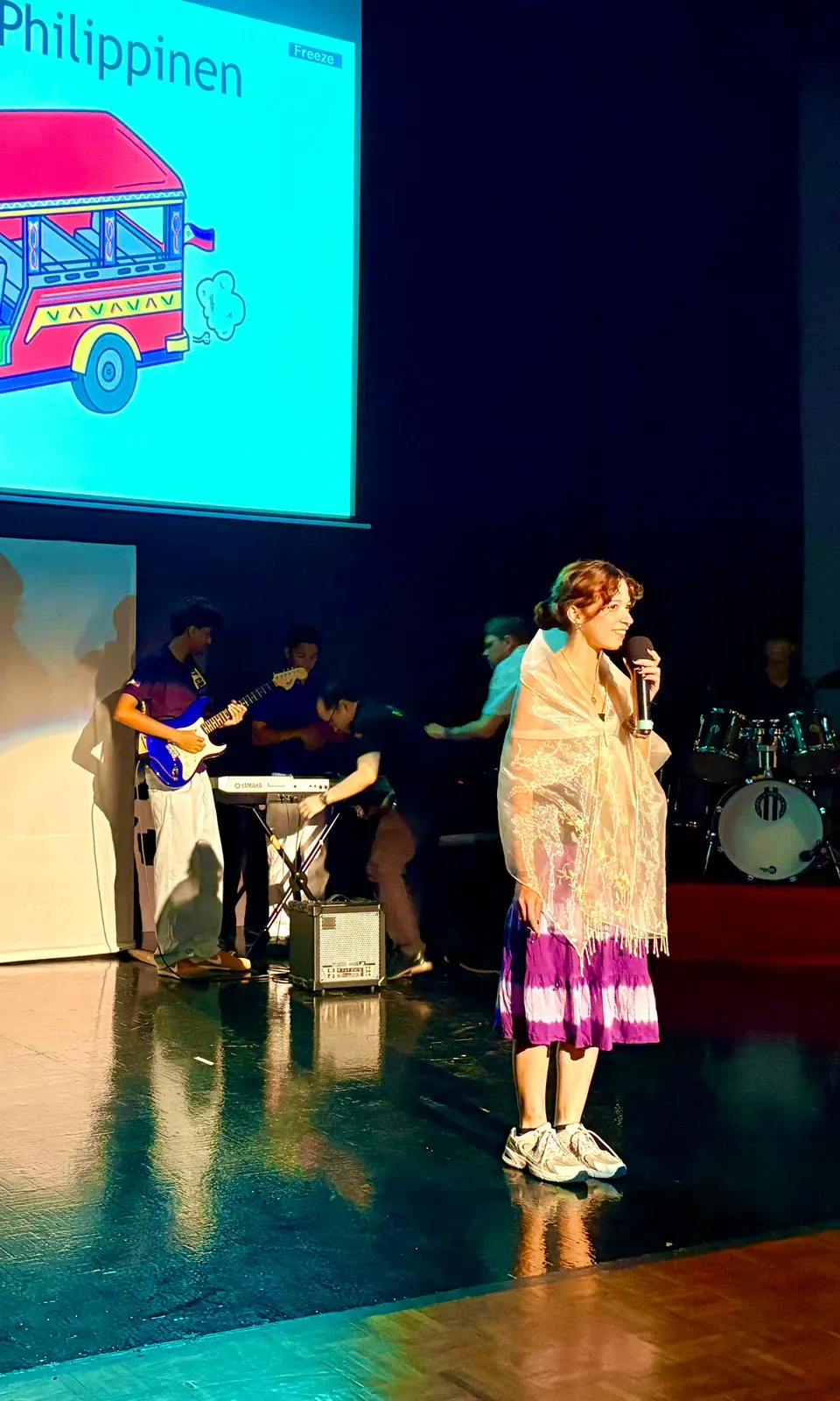 Die finale Show des Kulturfests war sehr abwechslungsreich. Viele Workshops zeigten ihre Ergebnisse auf der Bühne. Am Anfang spielte das Orchester „We Are the World“. Danach gab es eine kurze Rede von Laura Engel. Anschließend spielte das Orchester noch einmal „All Around the World“. Beim Programmpunkt “Rhythmus erleben und gemeinsam performen” wurde demonstriert, wie Musik aufgebaut wird. Es ging um Beat, Tempo und Rhythmus.