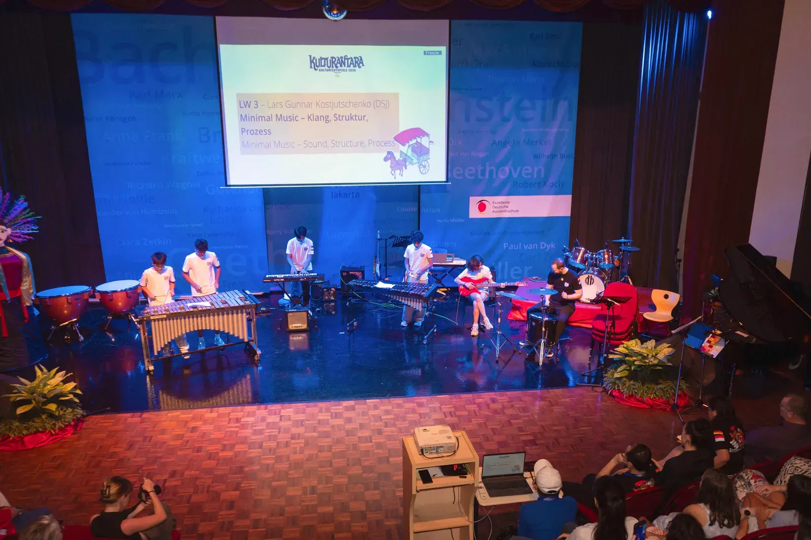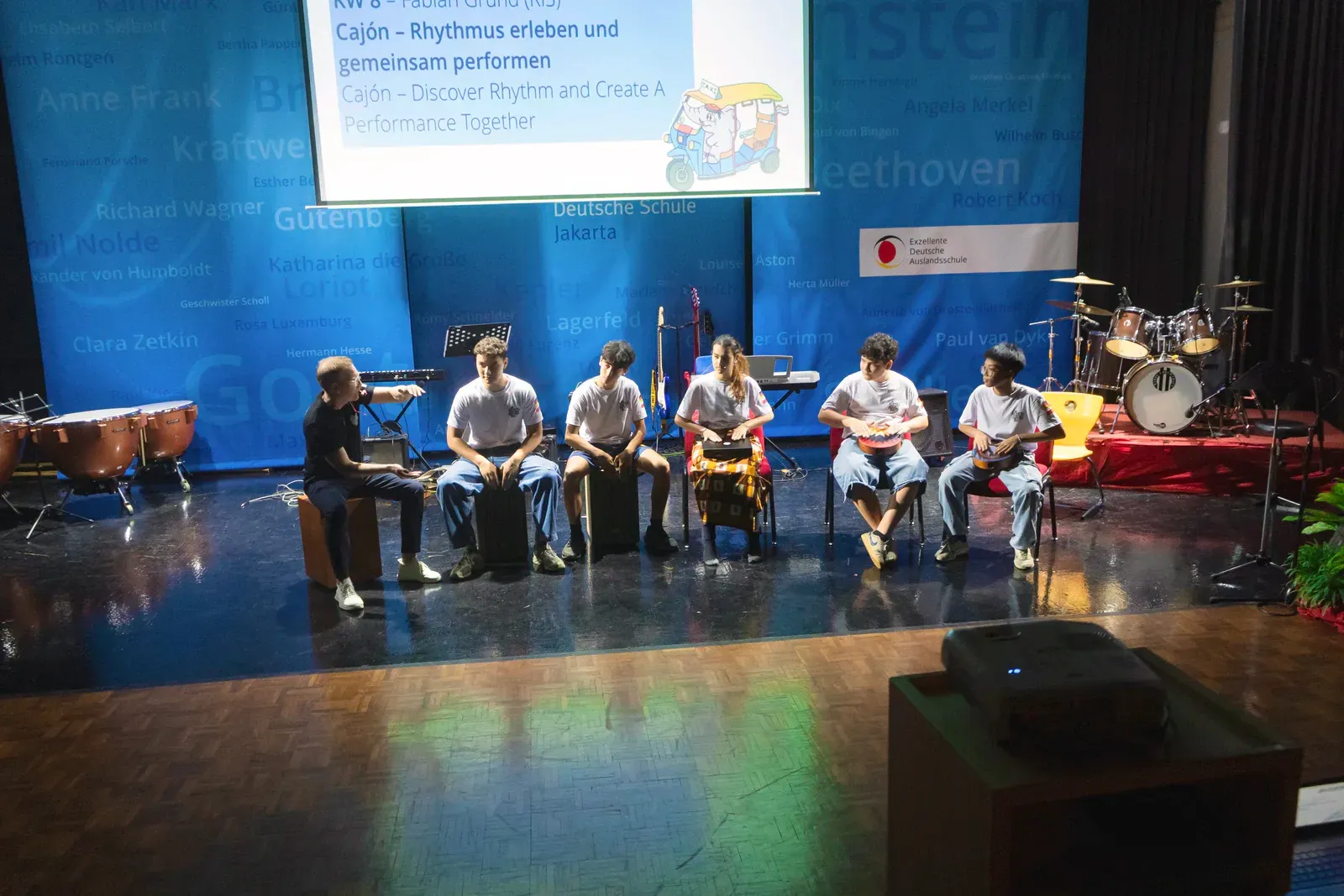 Das Kulturfest der Deutschen Schule Jakarta bot viele verschiedene Langzeit-Workshops aus den Bereichen Tanz, Musik, Kunst und Diskussion. Schülerinnen und Schüler aus unterschiedlichen Deutschen Schulen in Süd-Ost Asien nahmen daran teil und arbeiteten in gemischten Gruppen zusammen.