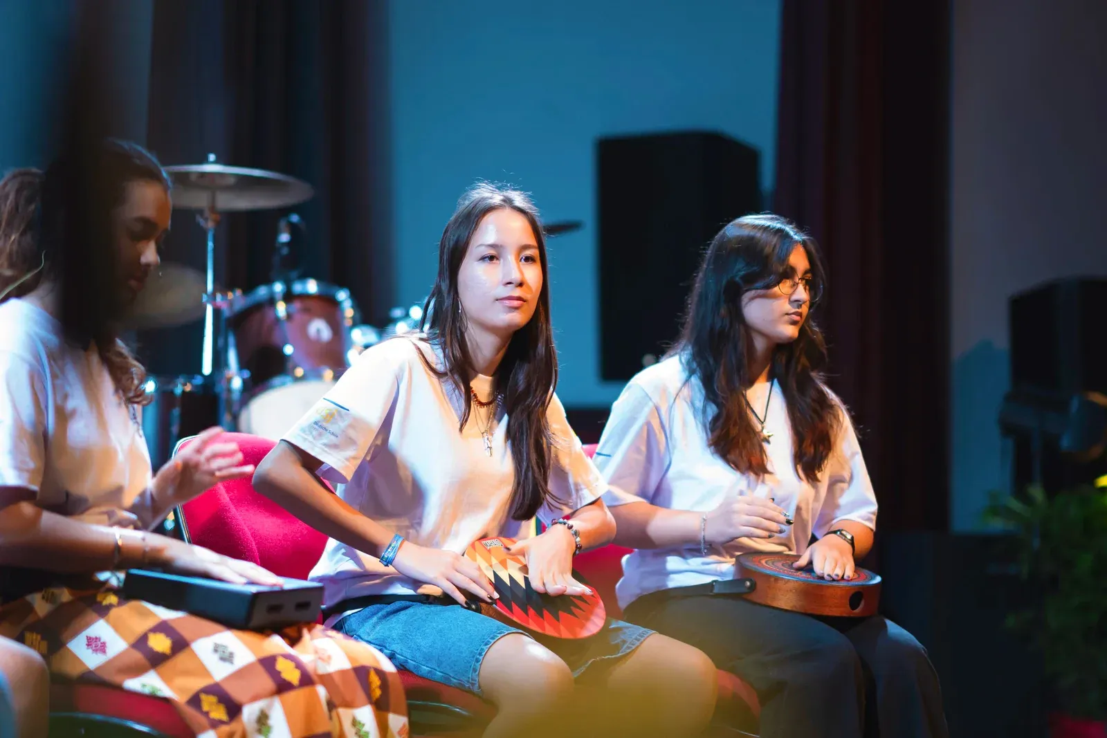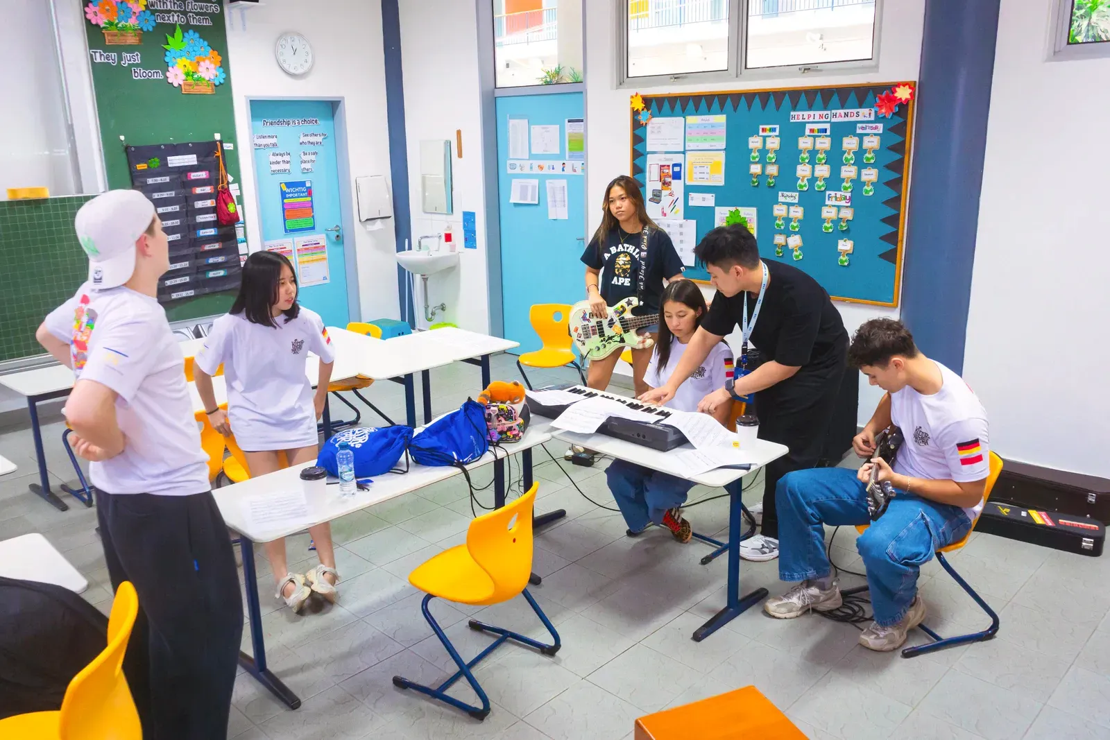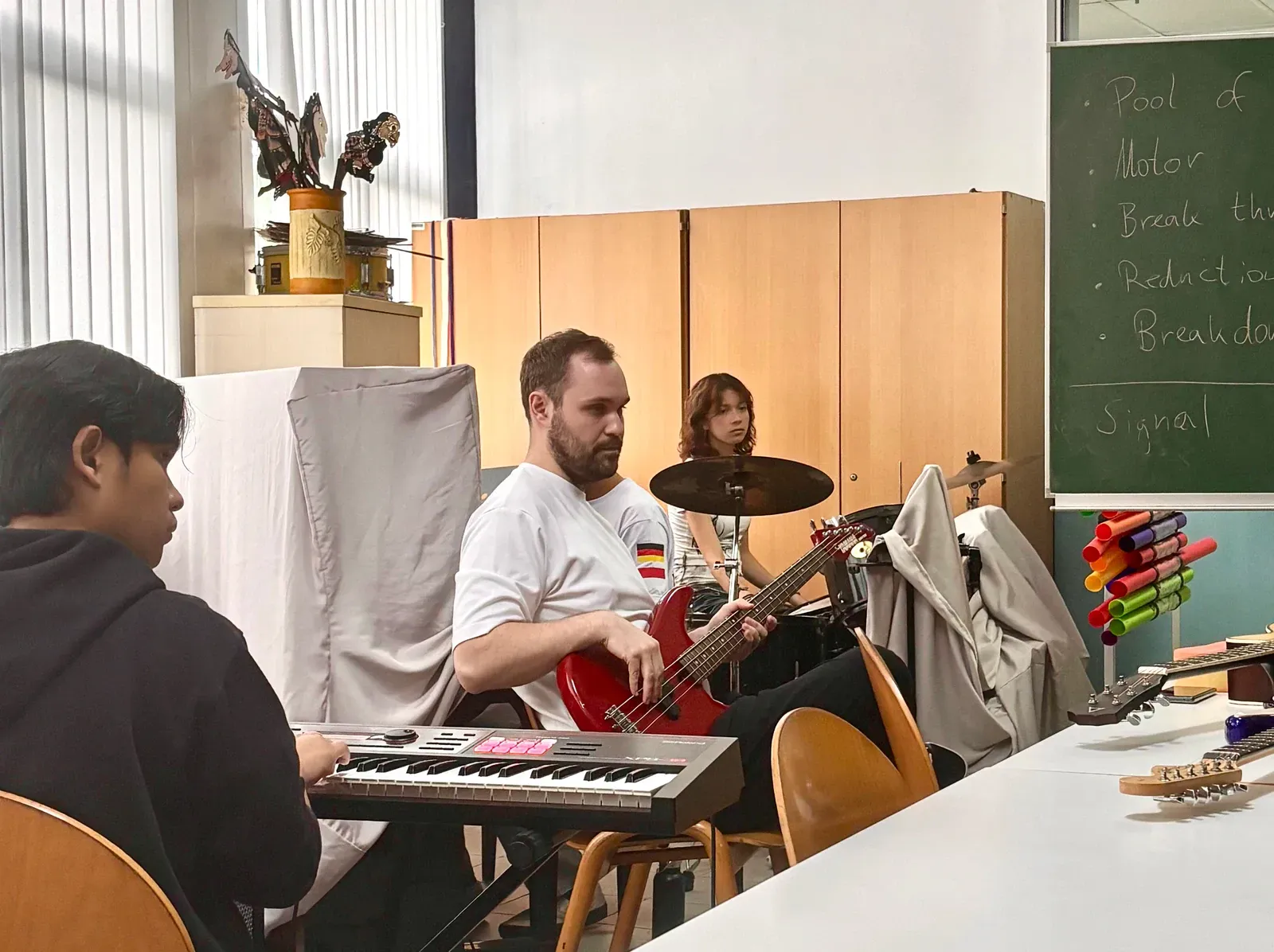 Im Cross Cultural Ensemble arbeiteten musikinteressierte Teilnehmende zusammen. Die Gruppe diskutierte, wer welche Instrumente übernehmen sollte, damit ein gemeinsames Ensemble entsteht.