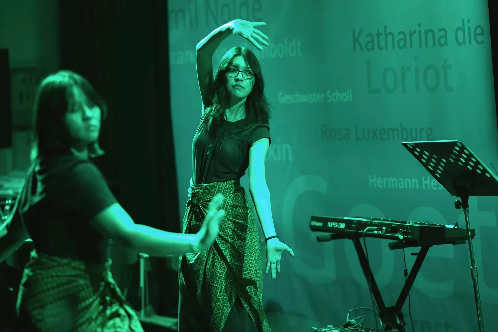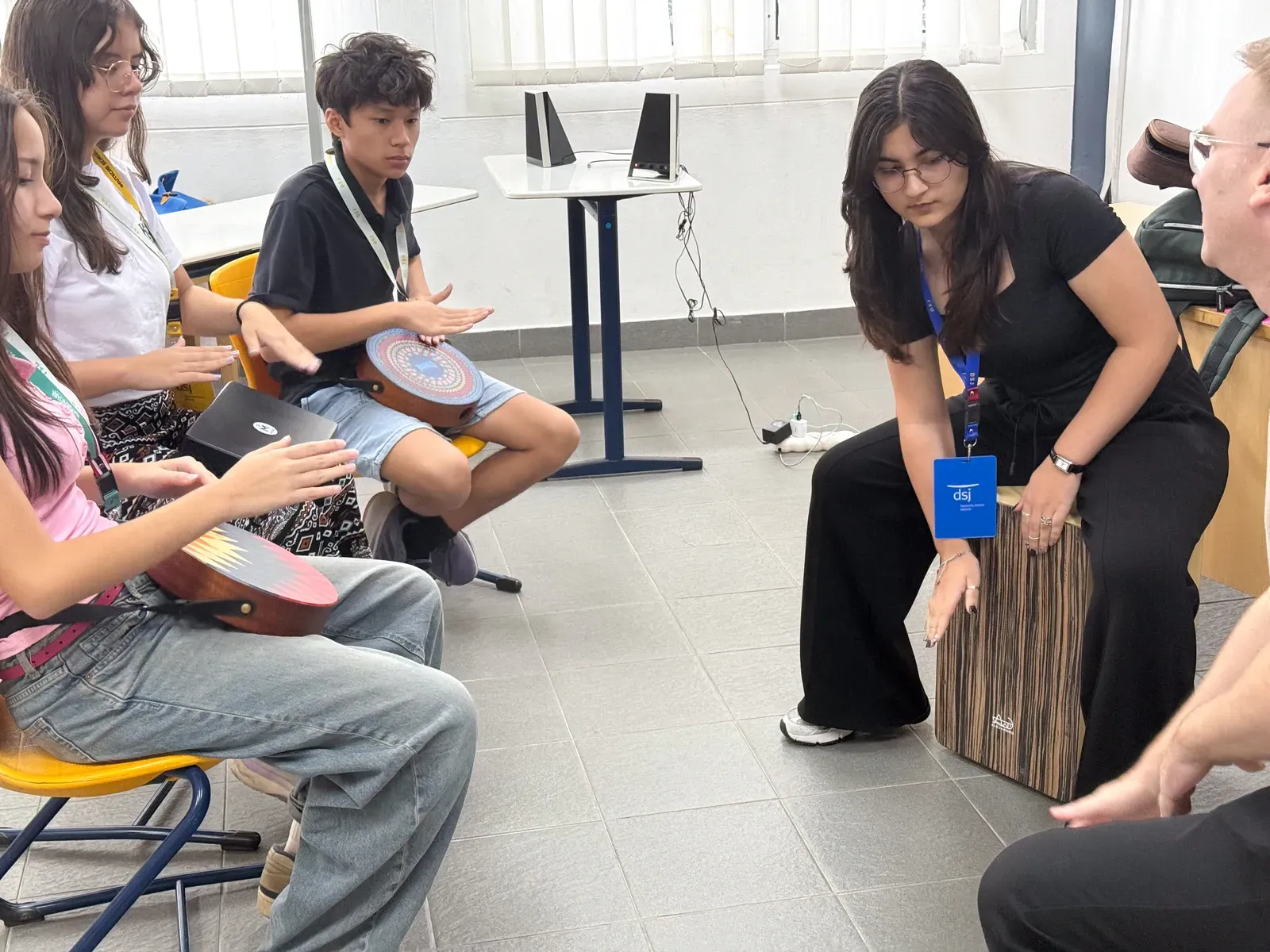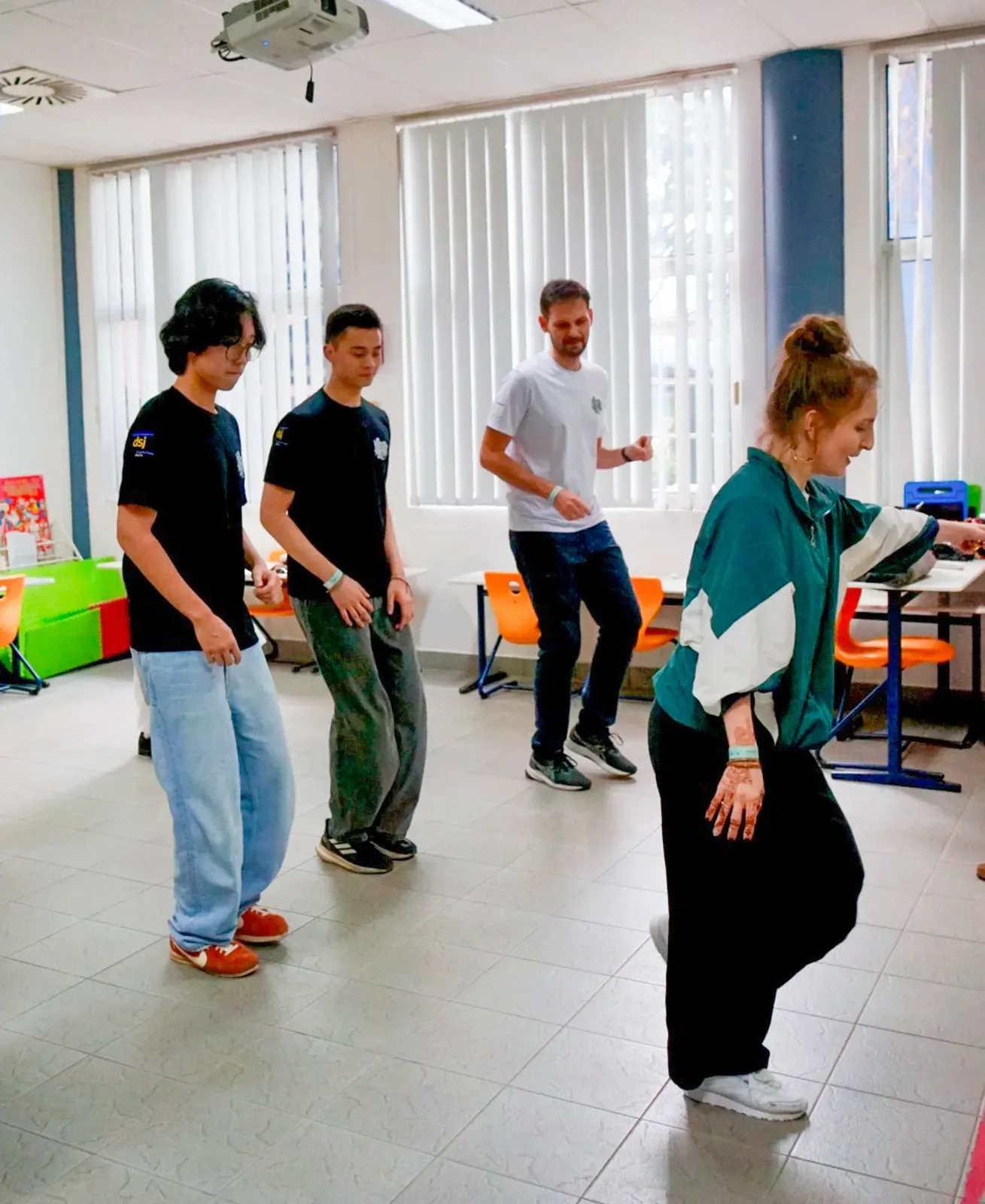 Am vierten und letzten Tag wurden sowohl die kurzen Sessions als auch die langfristigen Workshops fortgeführt und erfolgreich abgeschlossen, mit einem klaren Fokus auf den Abschluss und die Vorbereitung der finalen Präsentationen. Insbesondere die Gruppen der langfristigen Workshops nutzten die verbleibende Zeit, um ihre Ergebnisse zu verfeinern, zu proben und ihre Beiträge für die Abschlussaufführung in der Aula abzustimmen – und so mehrere Tage intensiver Zusammenarbeit in einer stimmigen Abschlusspräsentation zusammenzuführen.