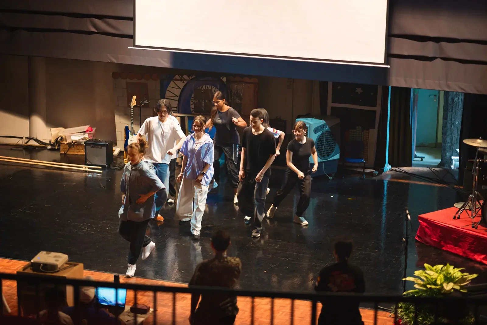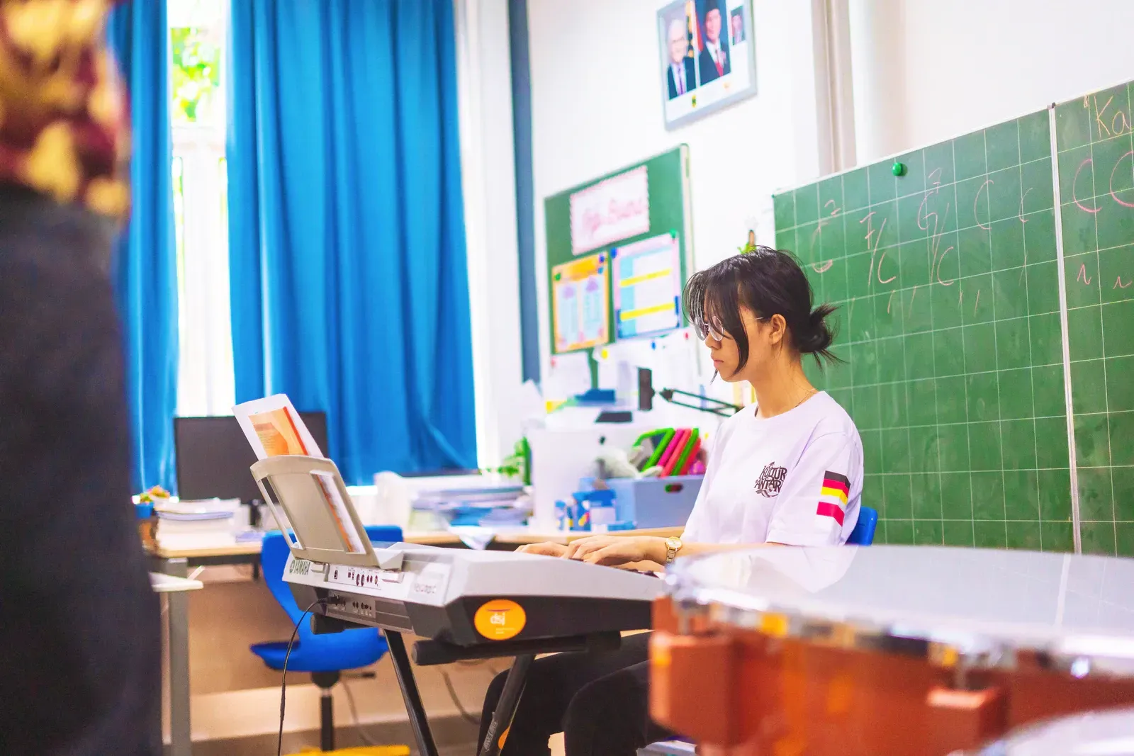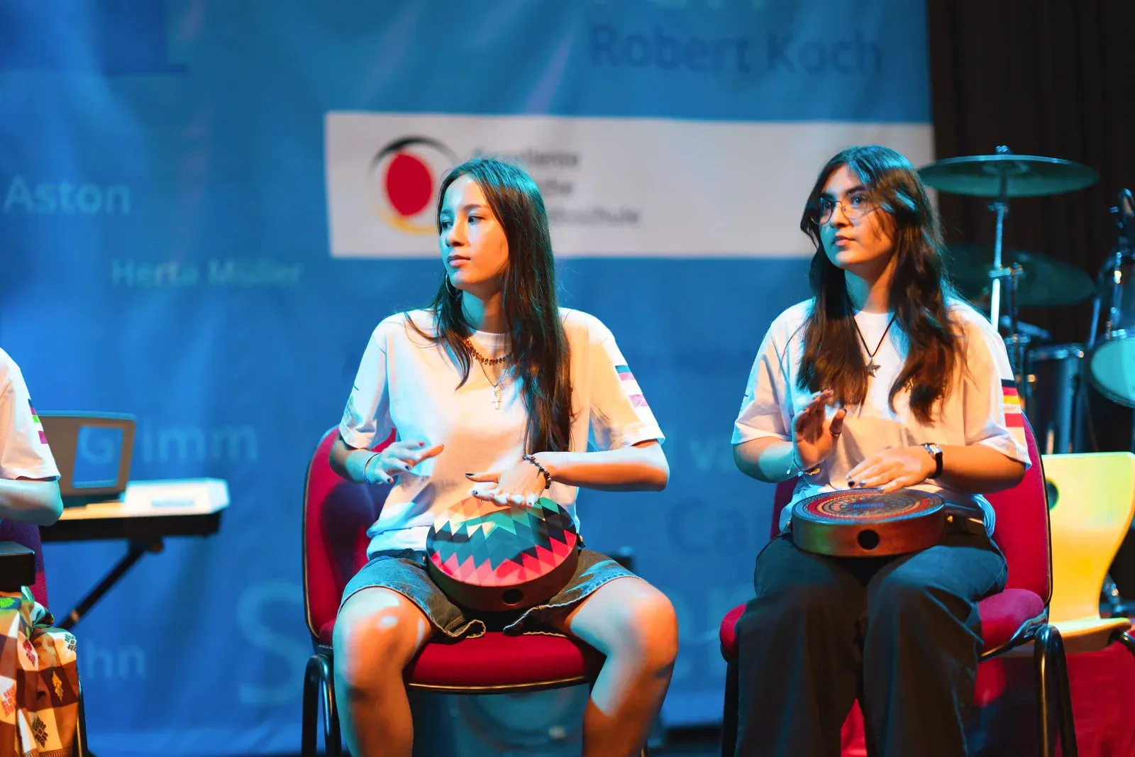 Am vierten und letzten Tag wurden sowohl die kurzen Sessions als auch die langfristigen Workshops fortgeführt und erfolgreich abgeschlossen, mit einem klaren Fokus auf den Abschluss und die Vorbereitung der finalen Präsentationen. Insbesondere die Gruppen der langfristigen Workshops nutzten die verbleibende Zeit, um ihre Ergebnisse zu verfeinern, zu proben und ihre Beiträge für die Abschlussaufführung in der Aula abzustimmen – und so mehrere Tage intensiver Zusammenarbeit in einer stimmigen Abschlusspräsentation zusammenzuführen.