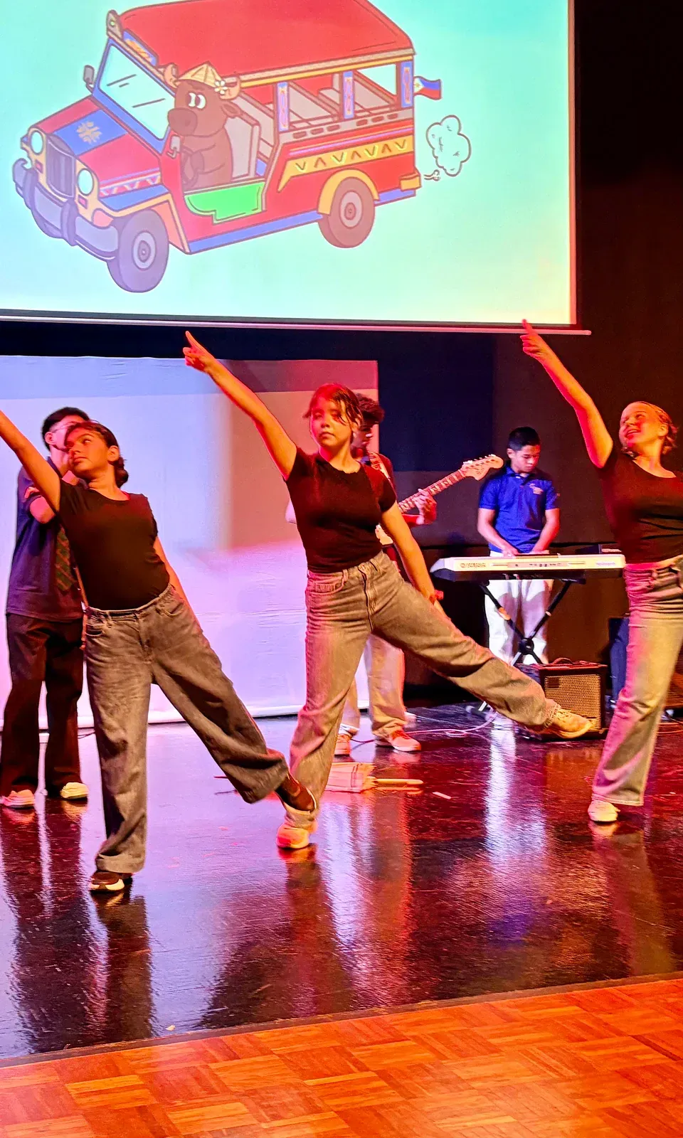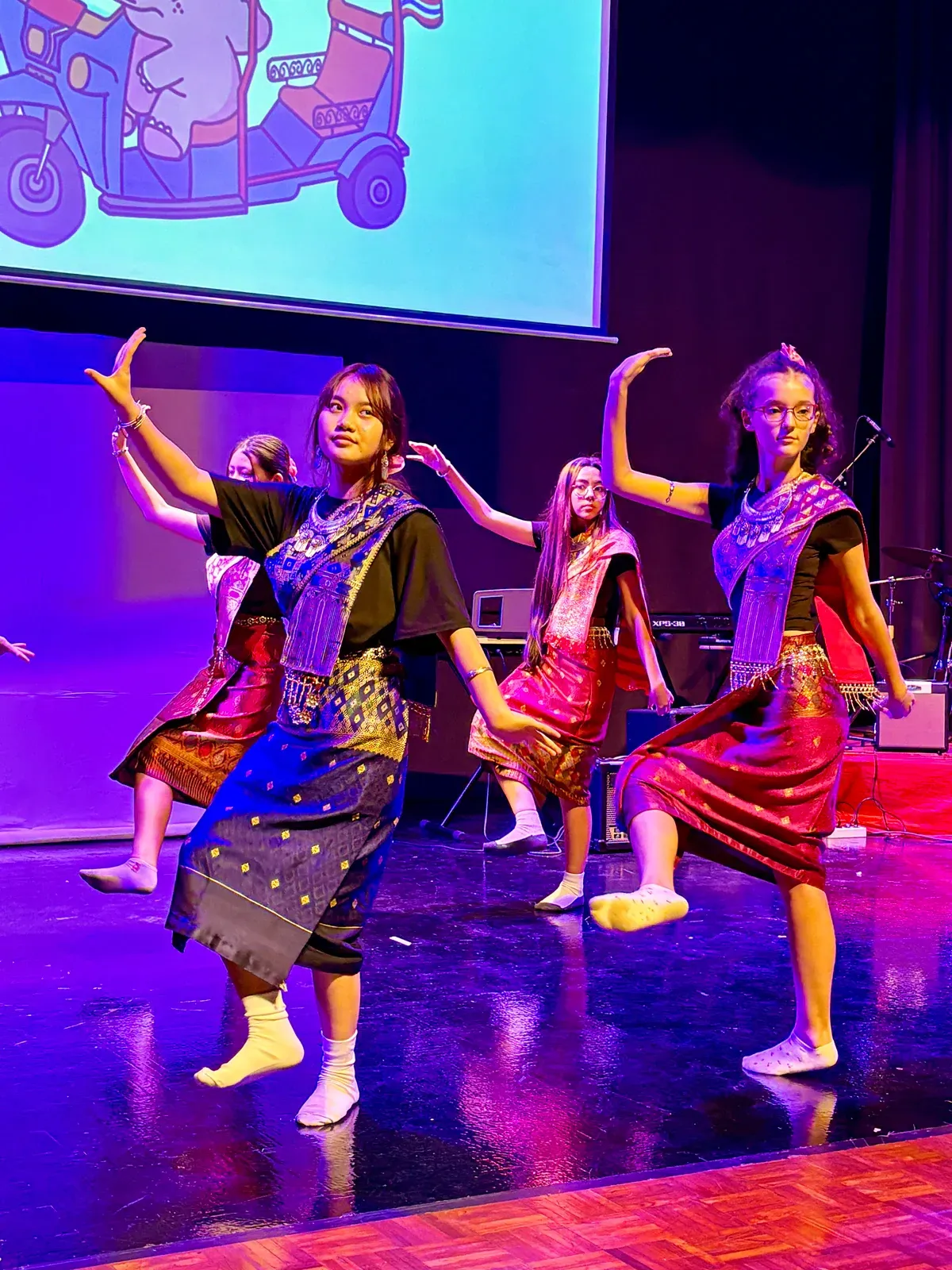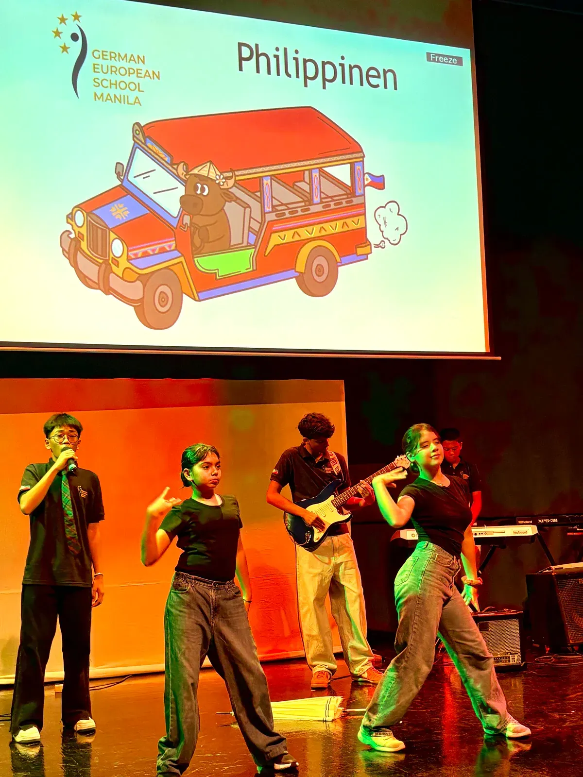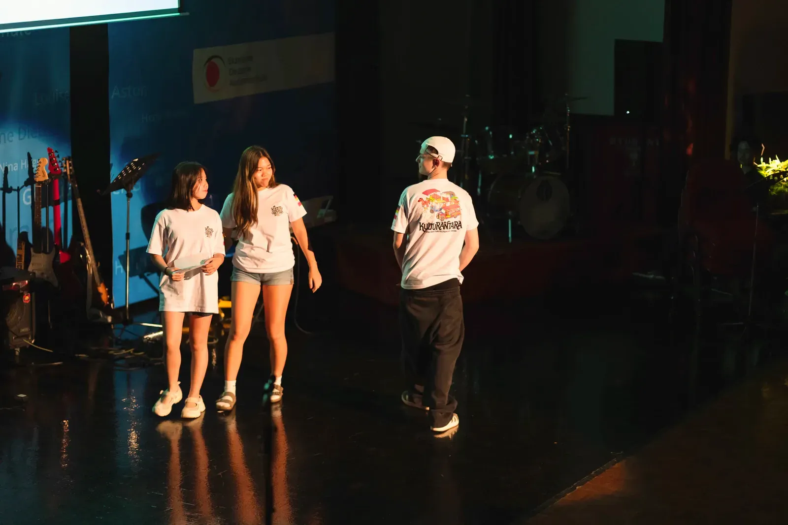 Zwischen den Auftritten der Schulen spielte die DSJ– Mittelstuffenband ein Lied. Ein Höhepunkt waren die anschließenden philippinischen Lieder, die voller Energie waren. Das vorletzte Land, welches aufführte, war Thailand. Zunächst mit der Schule aus Chiang Mai. Vor der Vorführung der zweiten Schule aus Thailand, spielte die Allstar Band der deutschen Schule Jakarta ein indonesisches Lied. Dann kam die RIS aus Bangkok mit einer kleinen Geschichte, einen Tanz und einem Lied. Mit der letzten Vorführung durch DSJ– Schüler wurden vier unterschiedliche Regionen Indonesiens in einem Puppenspiel vorgestellt. Besonders beachtenswert war hierbei, dass eins der Lieder eigens von einem Schüler komponiert wurde. Zum Schluss versammelten sich alle Schulen gemeinsam zu einem Foto und gaben der Eröffnungsfeier des Kulturantaras ein sinnprägendes Ende.