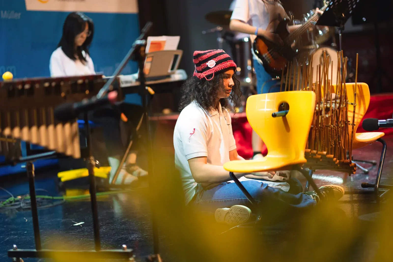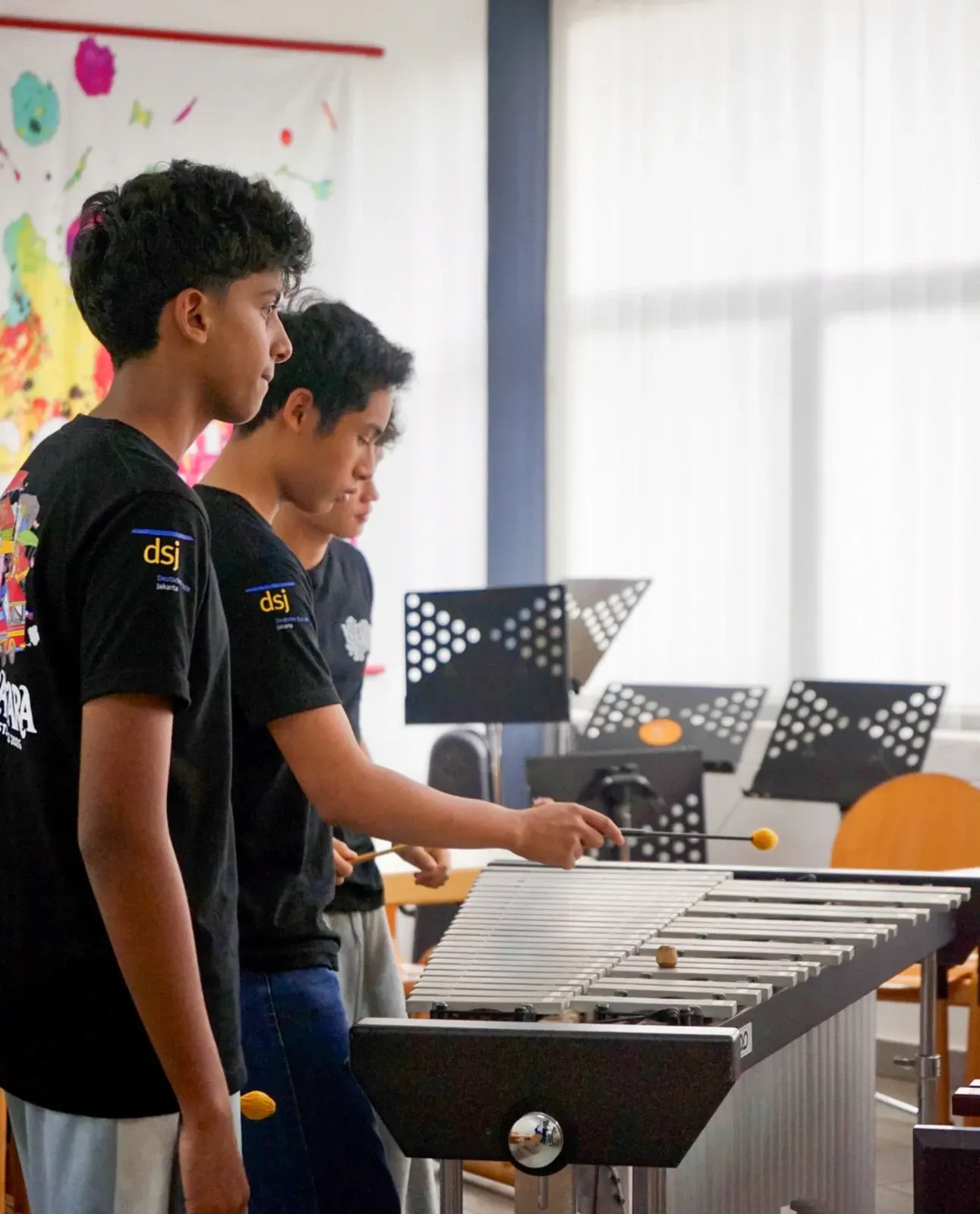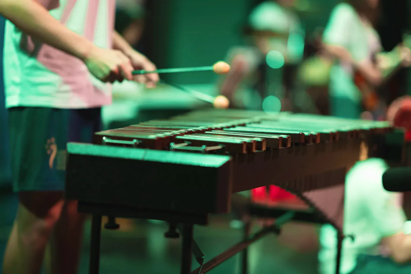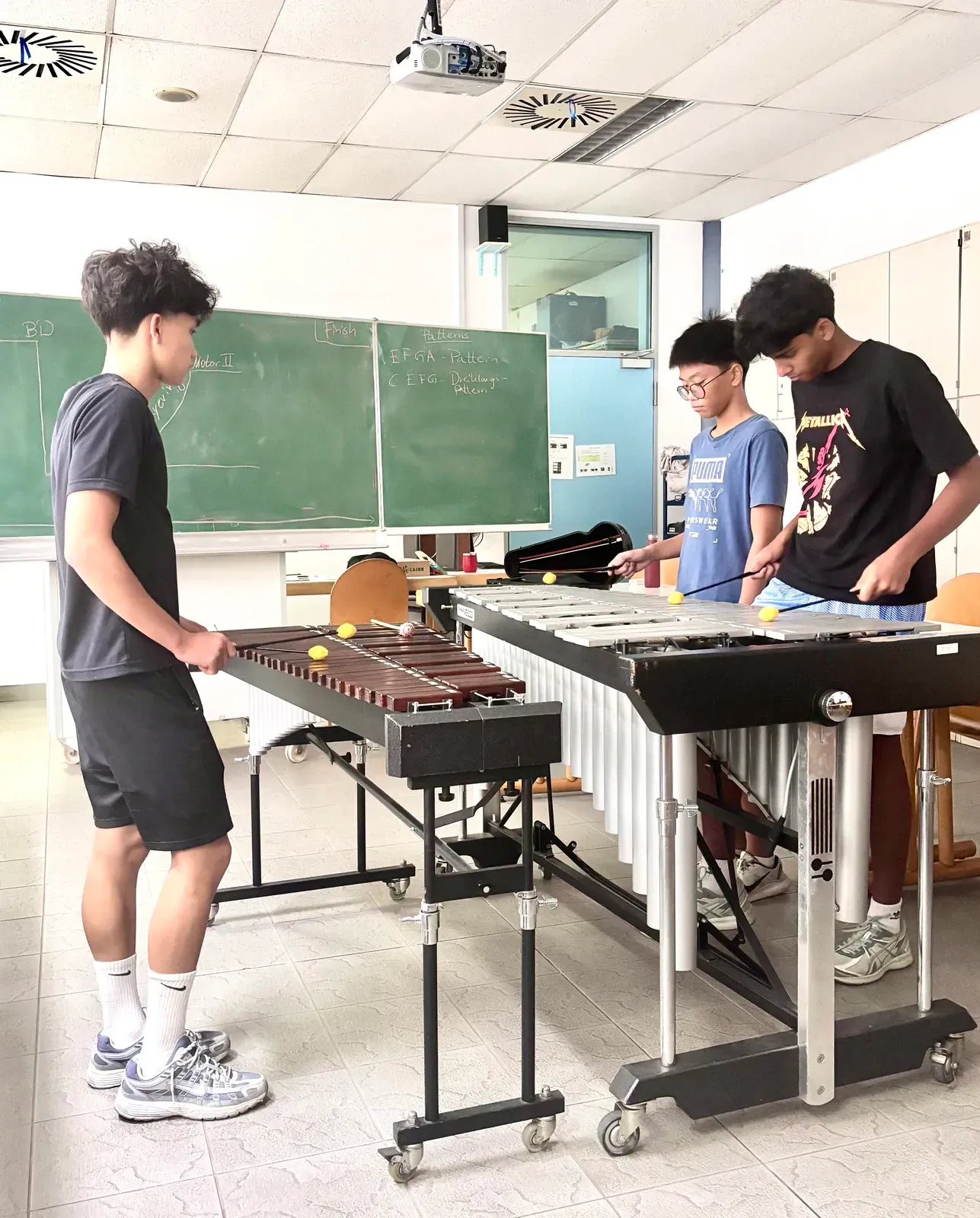 Im Workshop Minimal Music arbeiteten musikbegeisterte Schülerinnen und Schüler mit Xylophon und Klavier. Sie lernten die Instrumente kennen und versuchten zuerst ein Gefühl dafür zu bekommen, wie man zusammen musiziert.