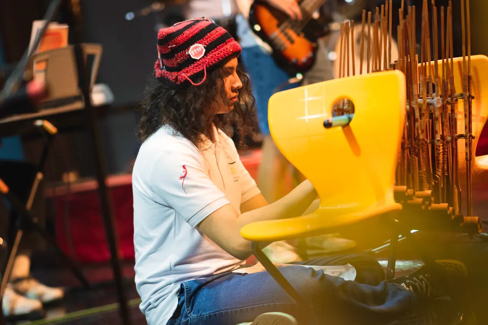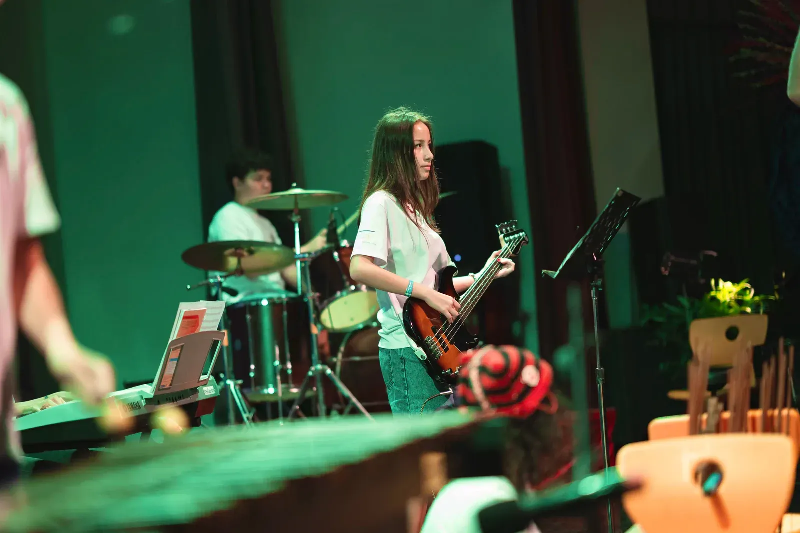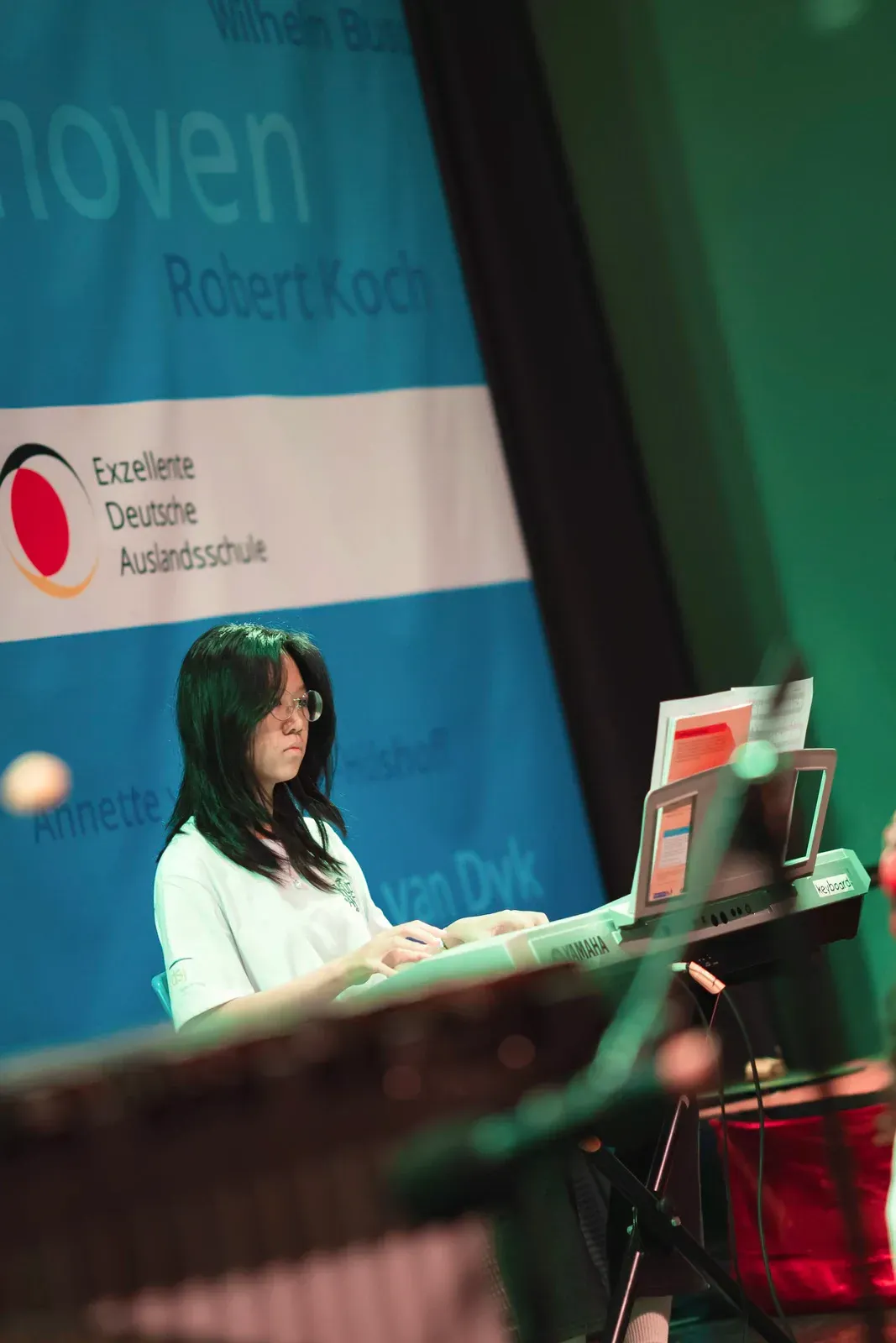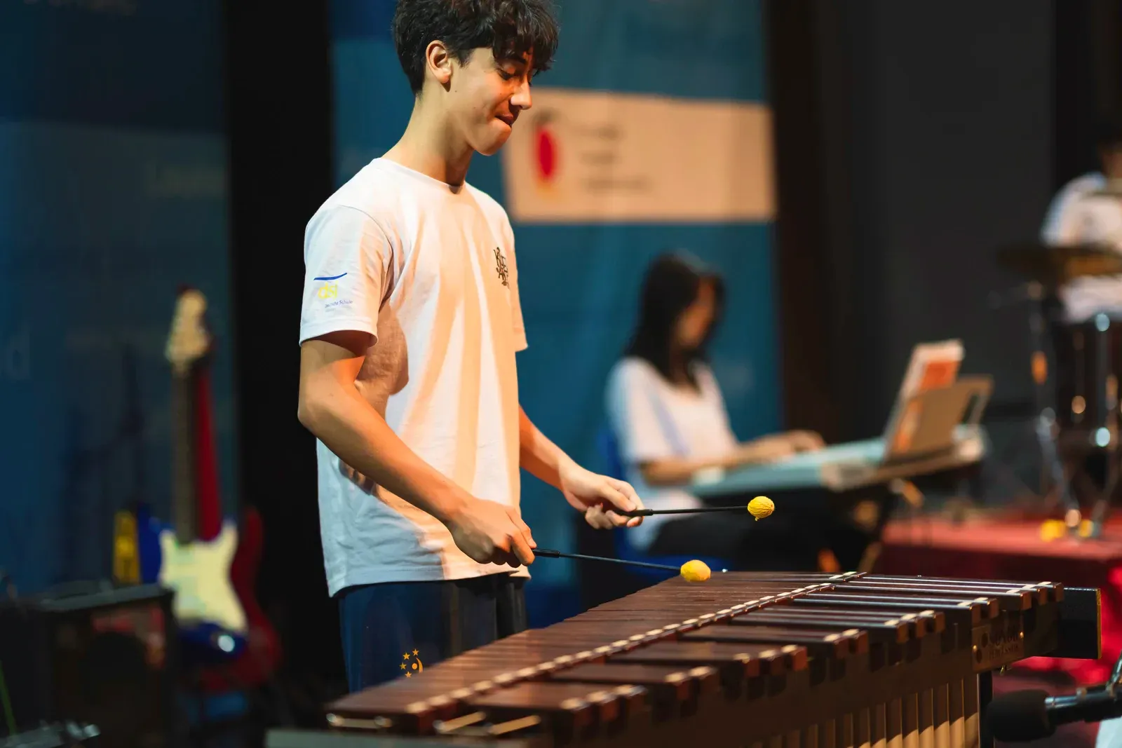 Im Workshop Minimal Music arbeiteten musikbegeisterte Schülerinnen und Schüler mit Xylophon und Klavier. Sie lernten die Instrumente kennen und versuchten zuerst ein Gefühl dafür zu bekommen, wie man zusammen musiziert.