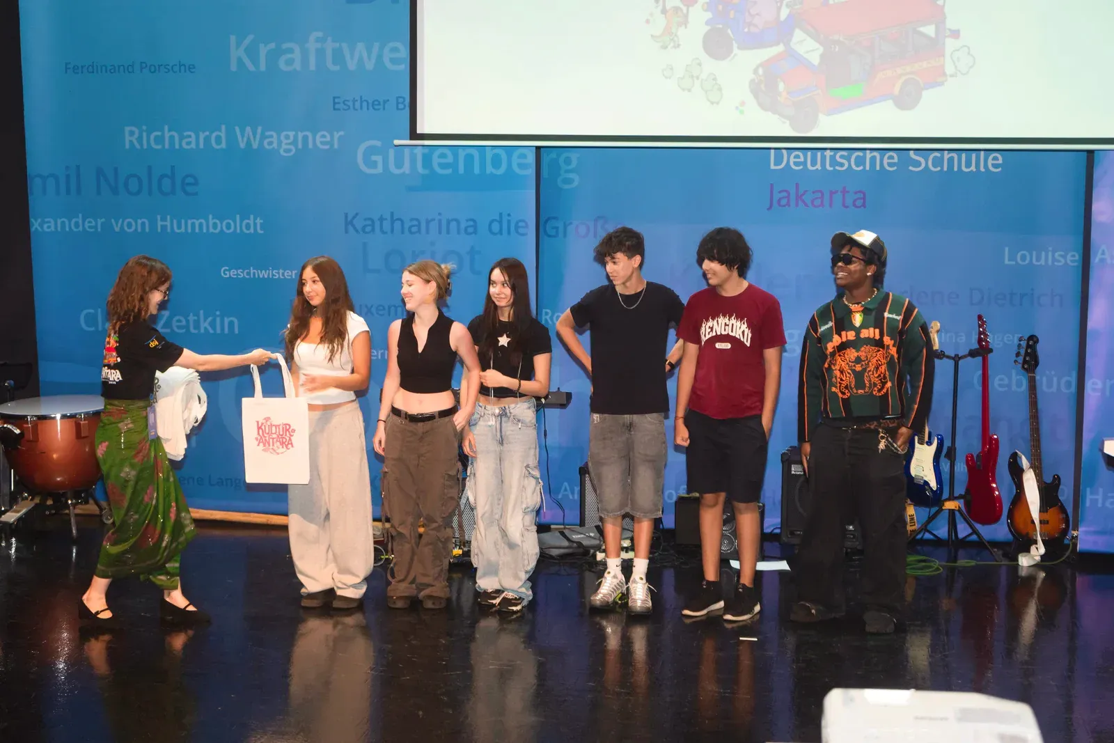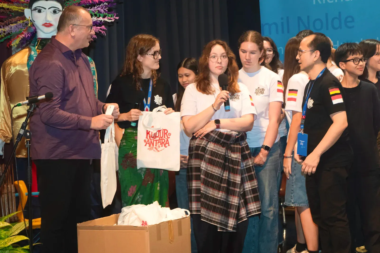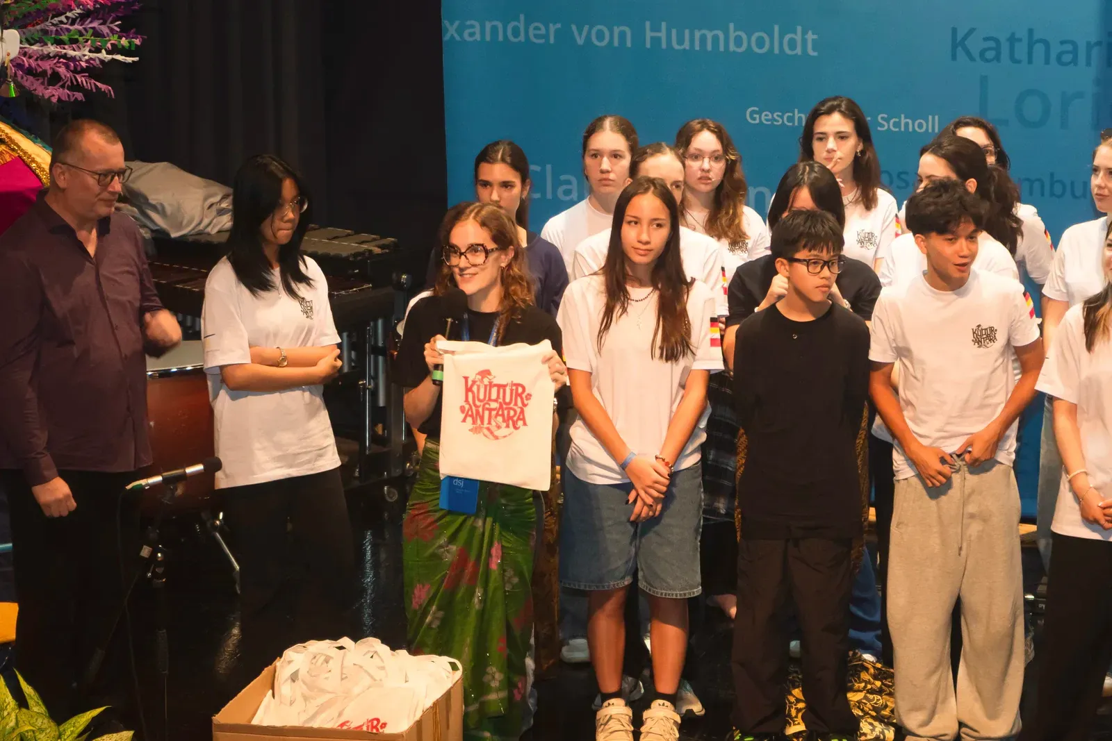 Mein herzlicher Dank gilt allen, die dieses Festival möglich gemacht haben – unseren Lehrkräften, Organisatoren, Gastfamilien und Unterstützern. Ein besonderer Dank geht auch an Atiqa (Klasse 12), die die visuelle Identität von Kulturantara gestaltet hat, einschließlich Logo und Merchandise für alle Teilnehmenden.
