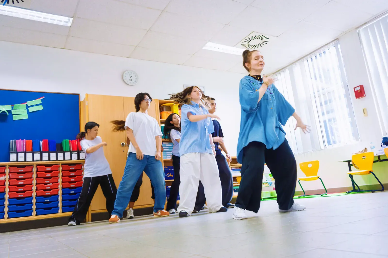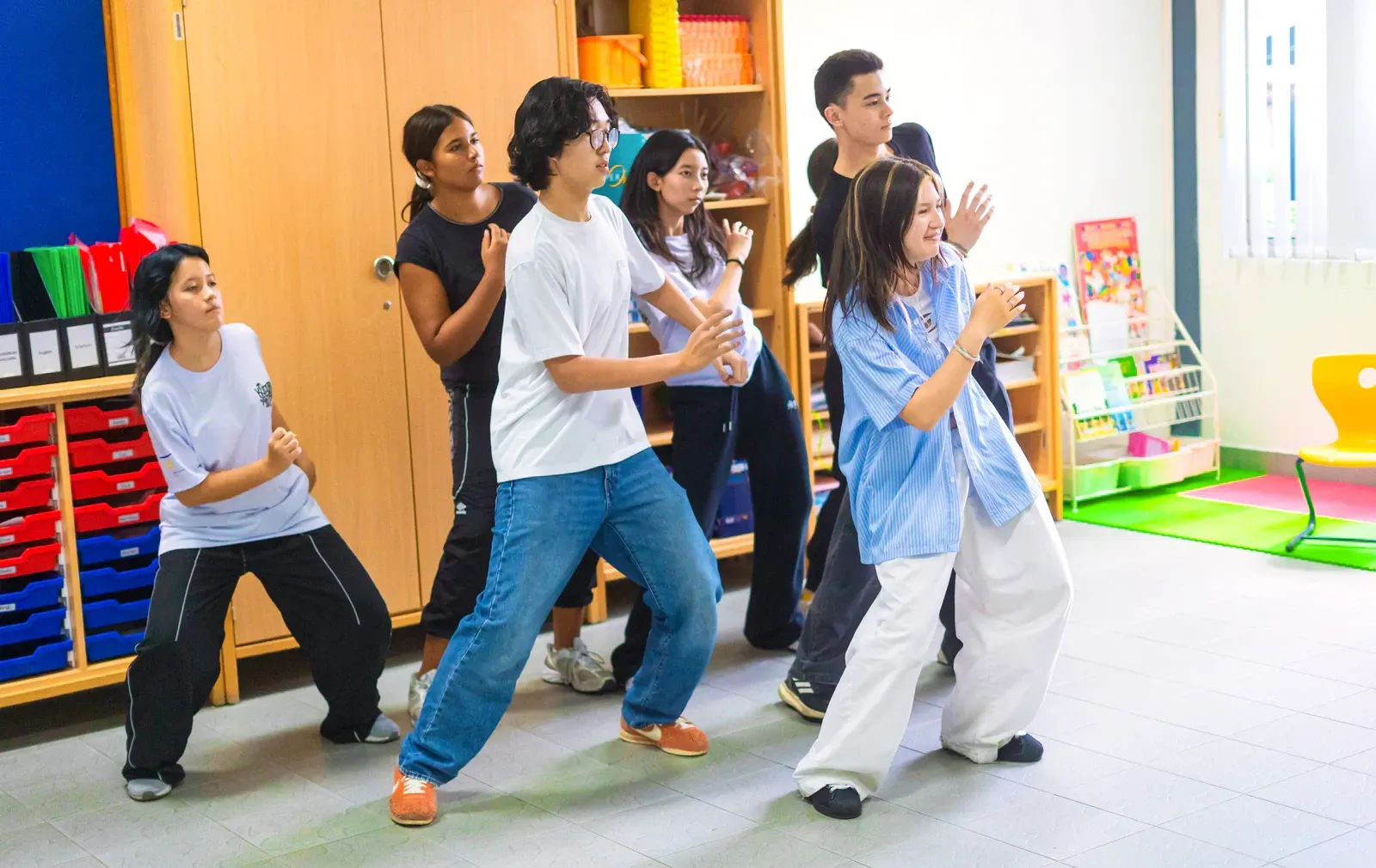 Im Workshop Hip-Hop & House Dance nahmen tanzinteressierte Schülerinnen und Schüler teil, die gerne aktiv sind und sich in Bewegungen ausprobieren. Die Gruppe bestand aus Teilnehmern der verschiedenen Schulen, die gemeinsam neue Tanzschritte erlernt haben.