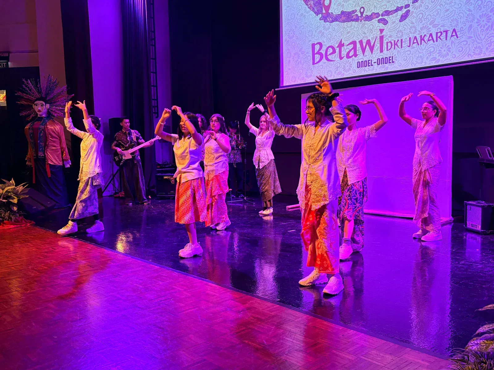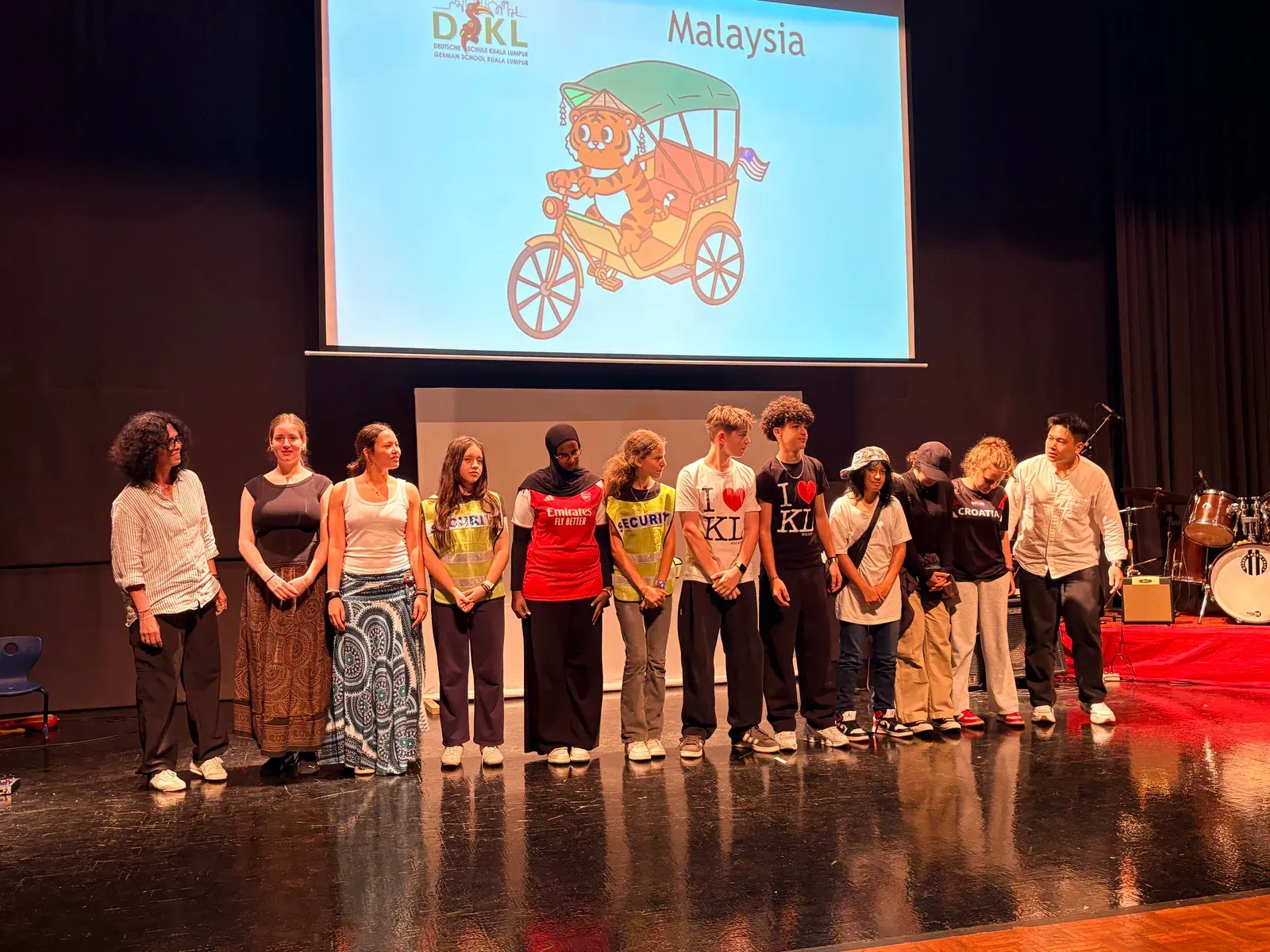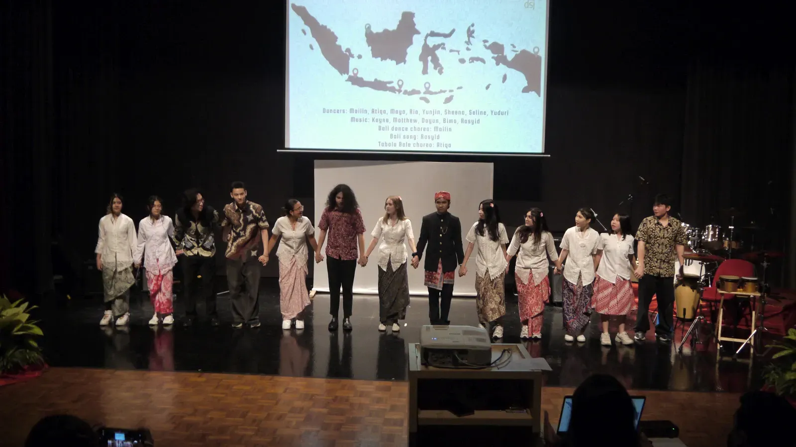 Zu Beginn wurden die deutsche und indonesische Nationalymne gespielt. Danach wurde erklärt, was unser Kulturfest ist und was es bedeutet. Mit einem Gongschlag wurde das Kulturfest dann offiziell eröffnet. Anschließend führten die Schulen viele kreative einmalige Stücke vor. Als erstes fing die Deutsche Schule Kuala Lumpur. Es wurde ein Theaterstück über zwei deutsche Touristen in Kuala Lumpur aufgeführt. Dann zeigte die indische Delegation einen Mix aus traditionellen und kulturellen Tänzen.