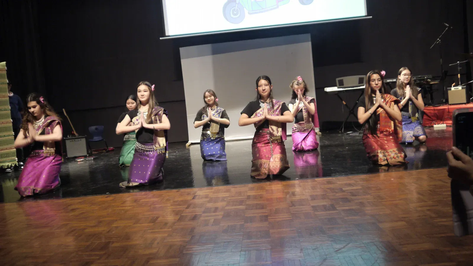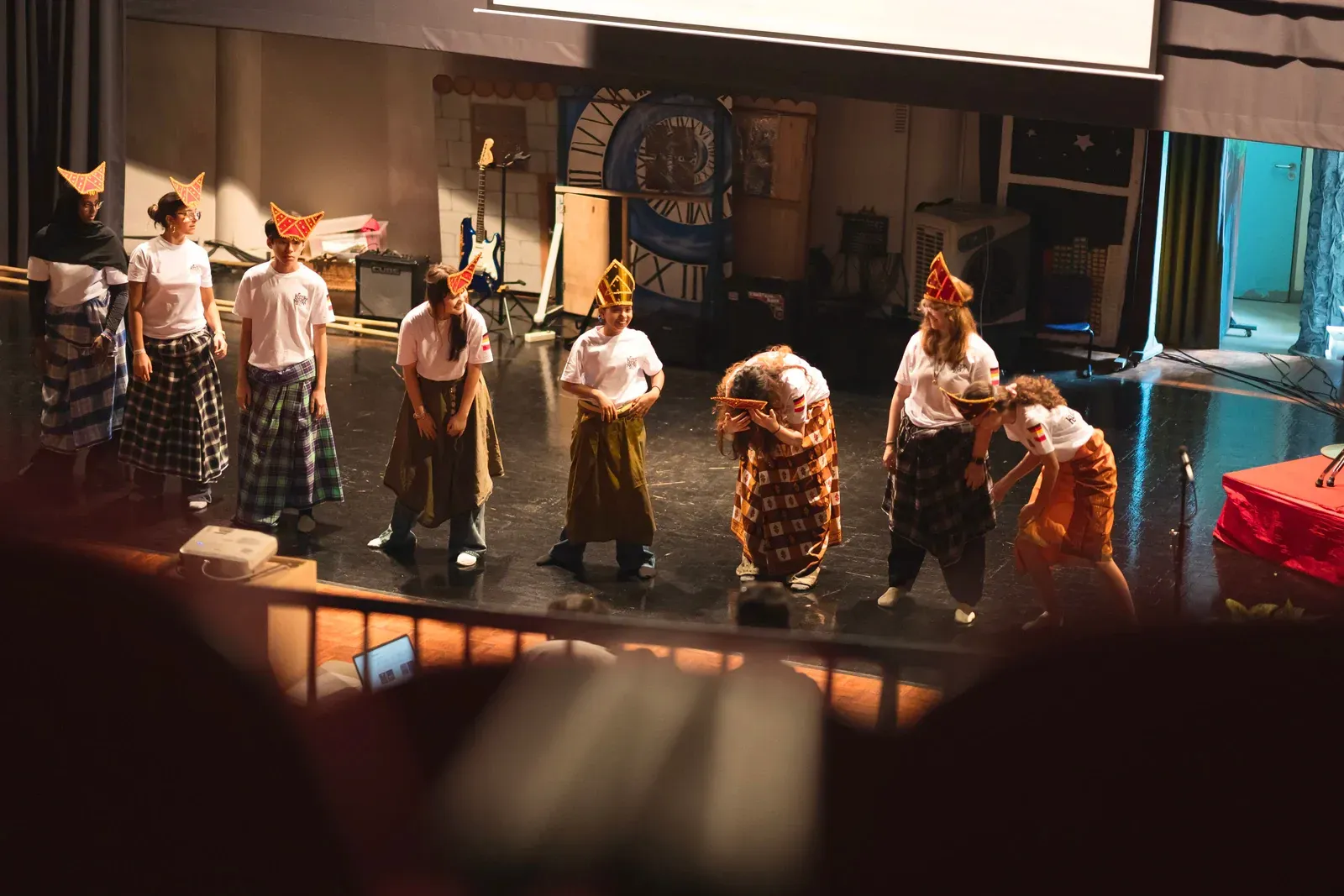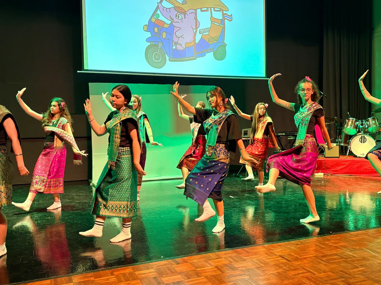 Zu Beginn wurden die deutsche und indonesische Nationalymne gespielt. Danach wurde erklärt, was unser Kulturfest ist und was es bedeutet. Mit einem Gongschlag wurde das Kulturfest dann offiziell eröffnet. Anschließend führten die Schulen viele kreative einmalige Stücke vor. Als erstes fing die Deutsche Schule Kuala Lumpur. Es wurde ein Theaterstück über zwei deutsche Touristen in Kuala Lumpur aufgeführt. Dann zeigte die indische Delegation einen Mix aus traditionellen und kulturellen Tänzen.