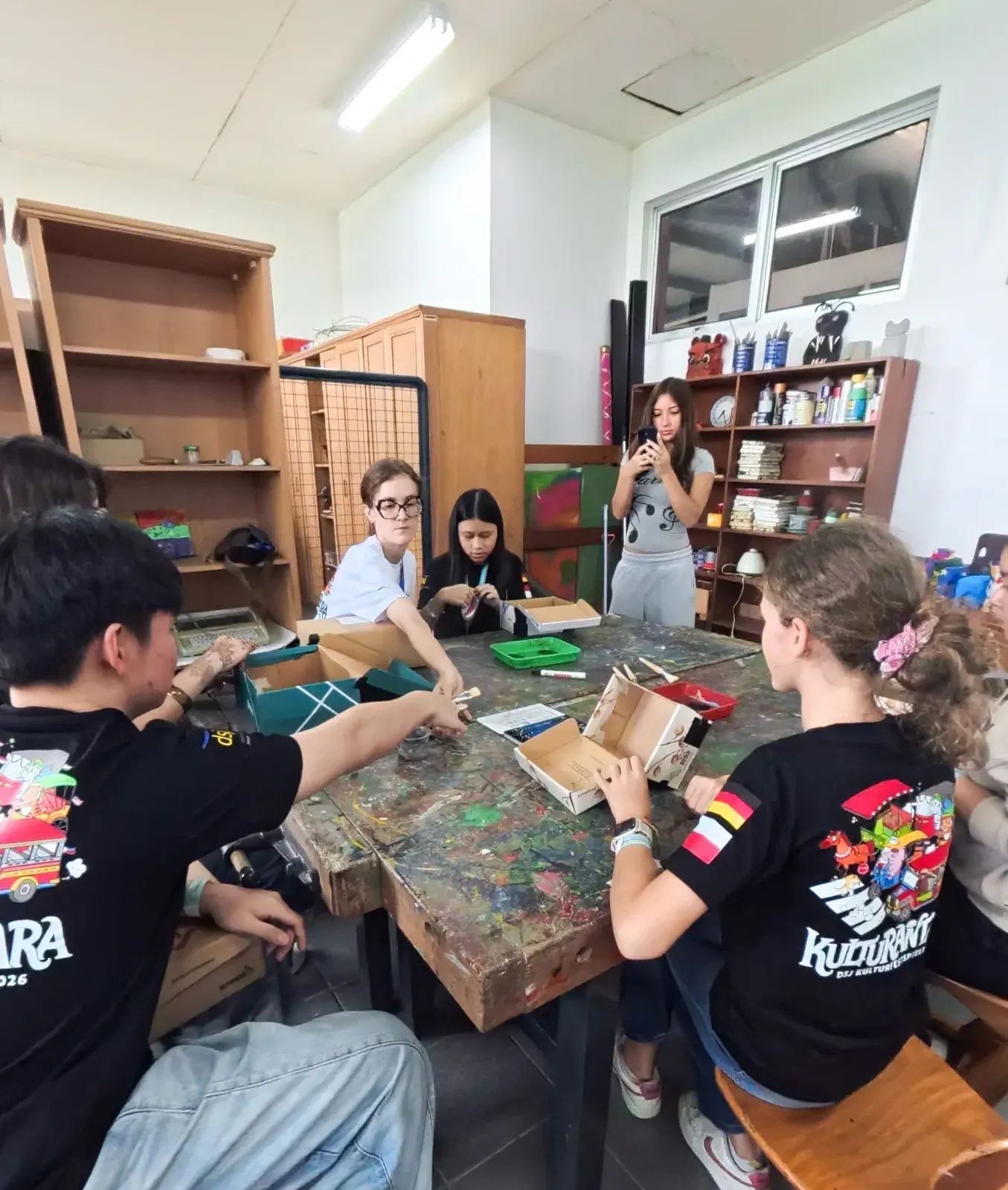 Im kreativen Workshop Shoebox Photography nahmen kunstinteressierte Schülerinnen und Schüler teil. Sie bemalten Schuhkartons und gestalteten diese kreativ und individuell.