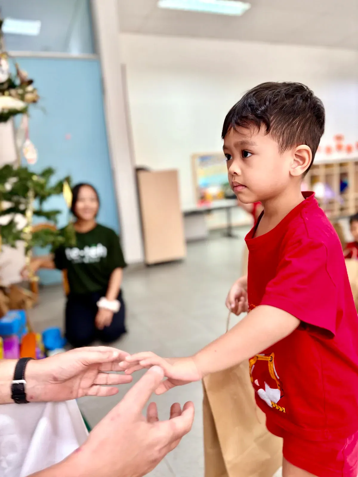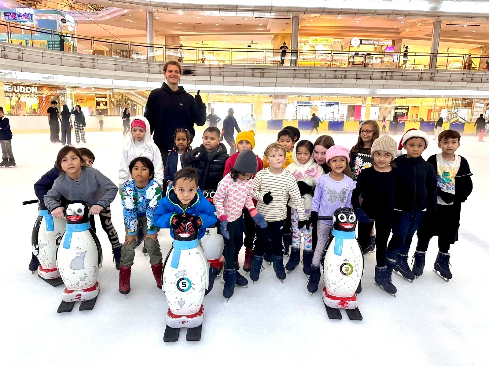 Anak-anak pun mengucapkan terima kasih dengan cara terbaik: lewat nyanyian, tarian, dan senyuman cerah yang memenuhi ruangan. Dan tentu saja, masing-masing menerima hadiah kecil sebelum melanjutkan petualangan kedua hari itu – ice skating di Taman Anggrek! ⛸️