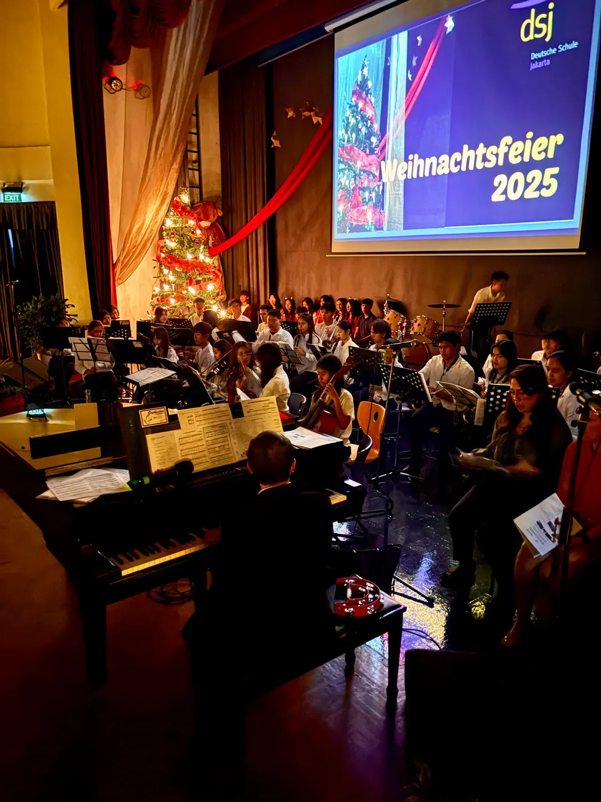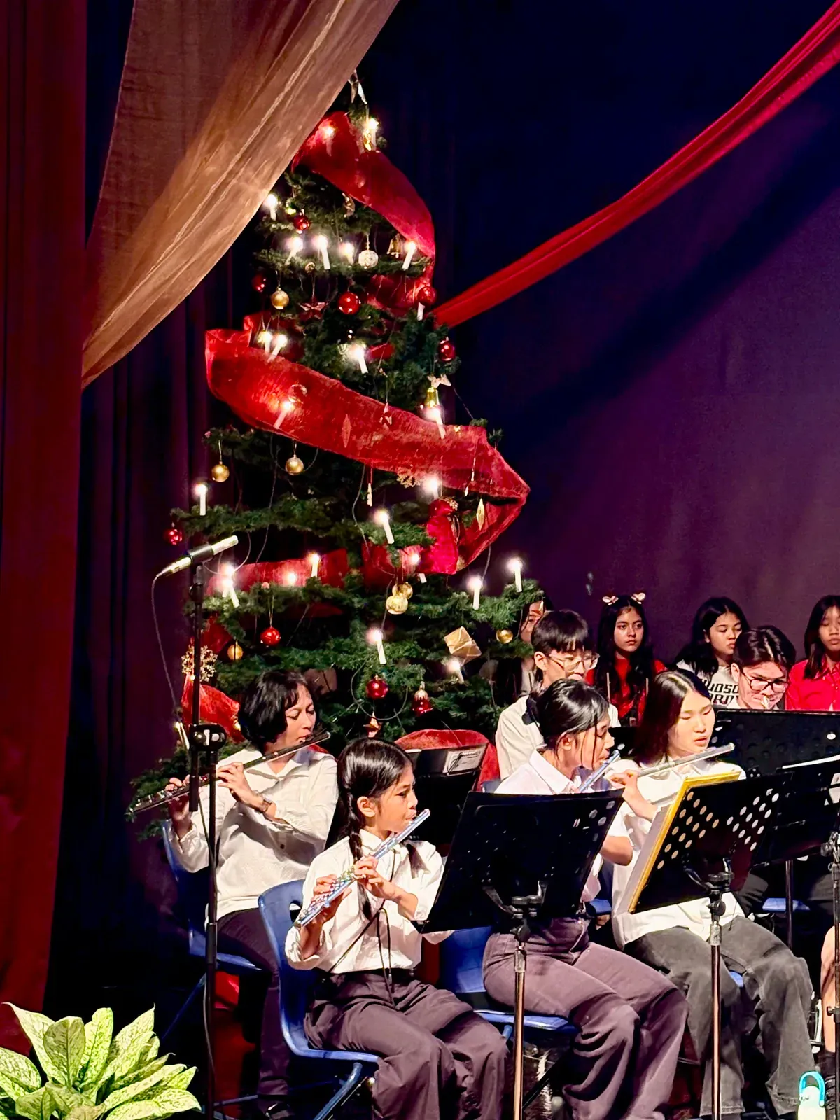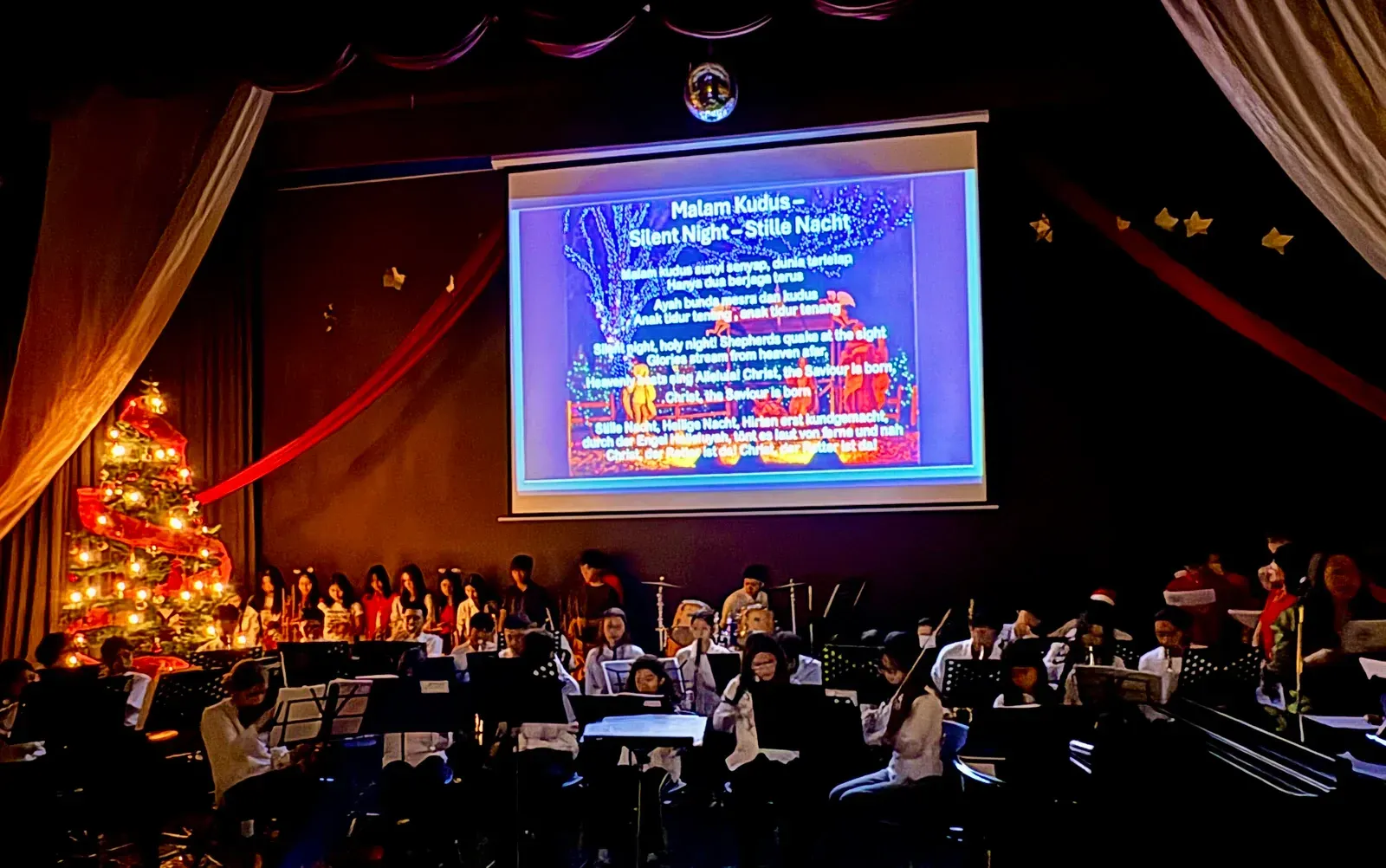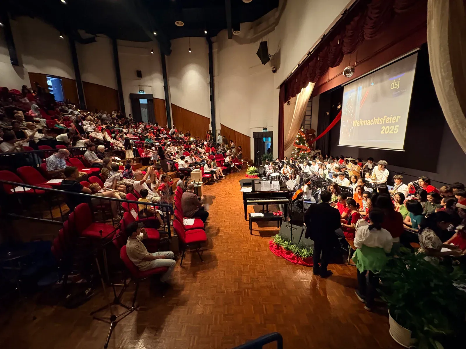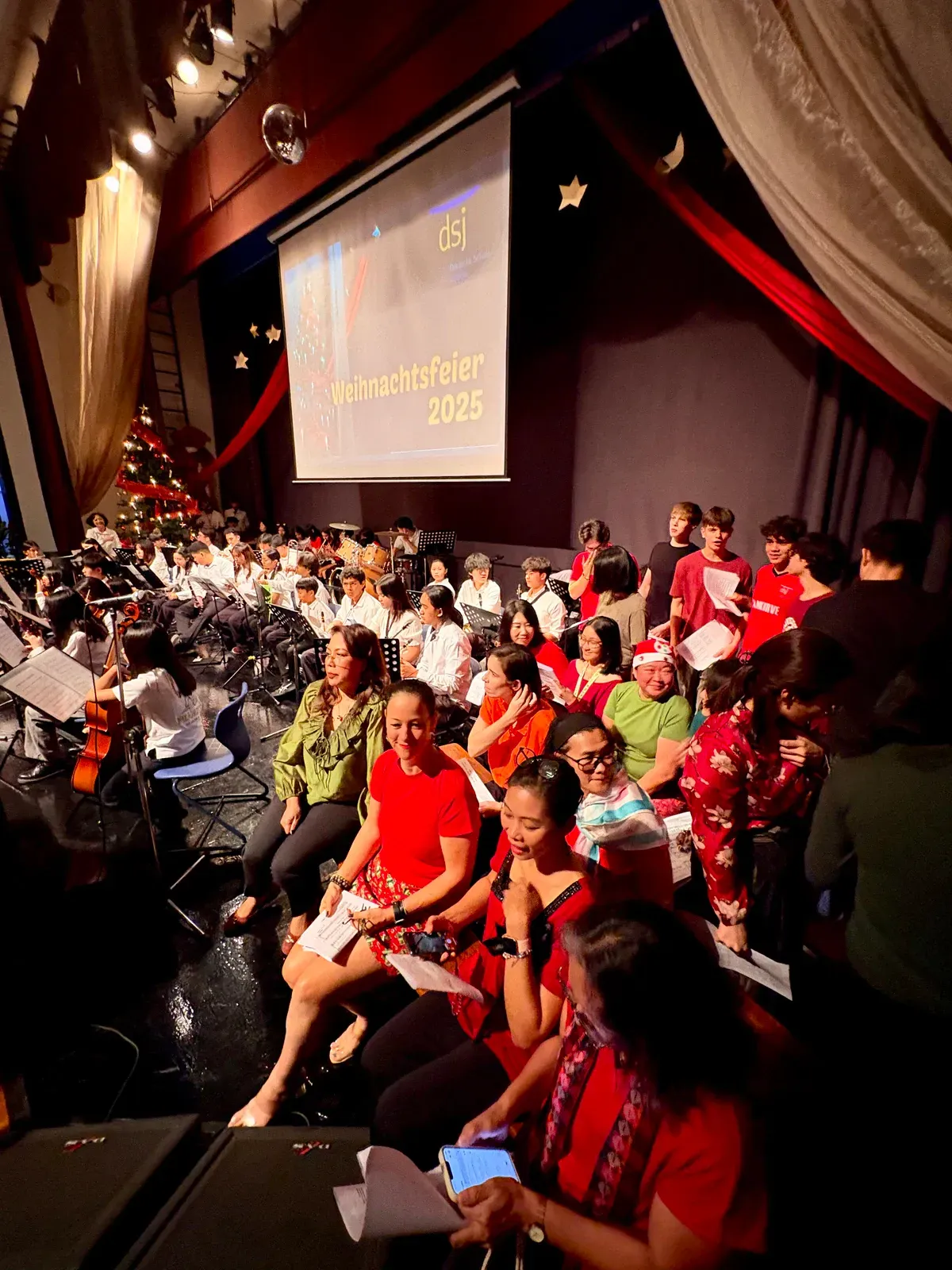 Di auditorium, Weihnachtsorchestra dan paduan suara menciptakan suasana yang indah, sementara di panggung hall, siswa dari Kindergarten hingga band sekolah menampilkan pertunjukan yang menawan, lucu, dan mengharukan. 🎶