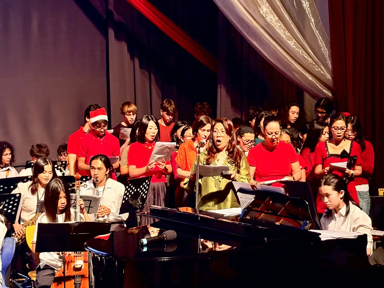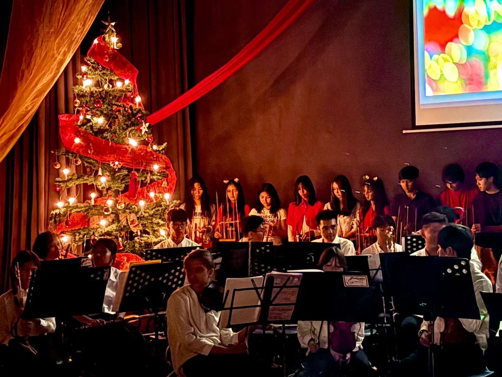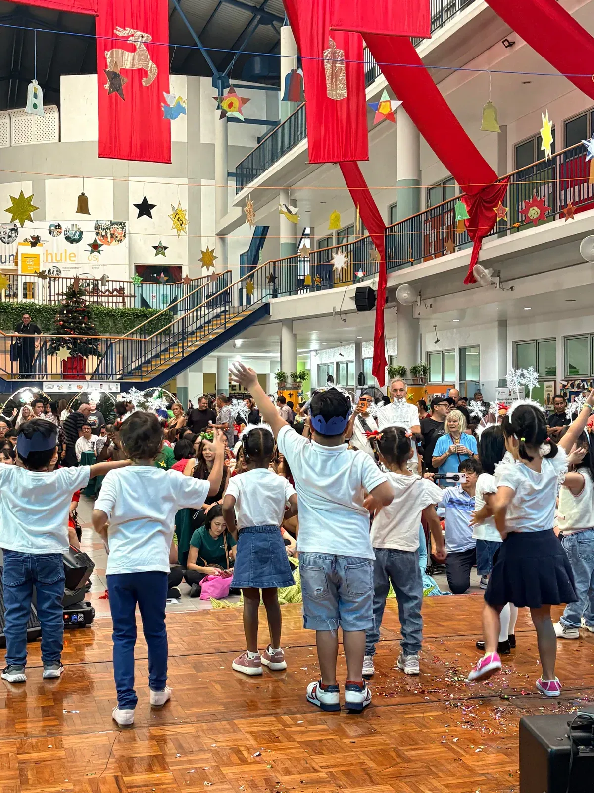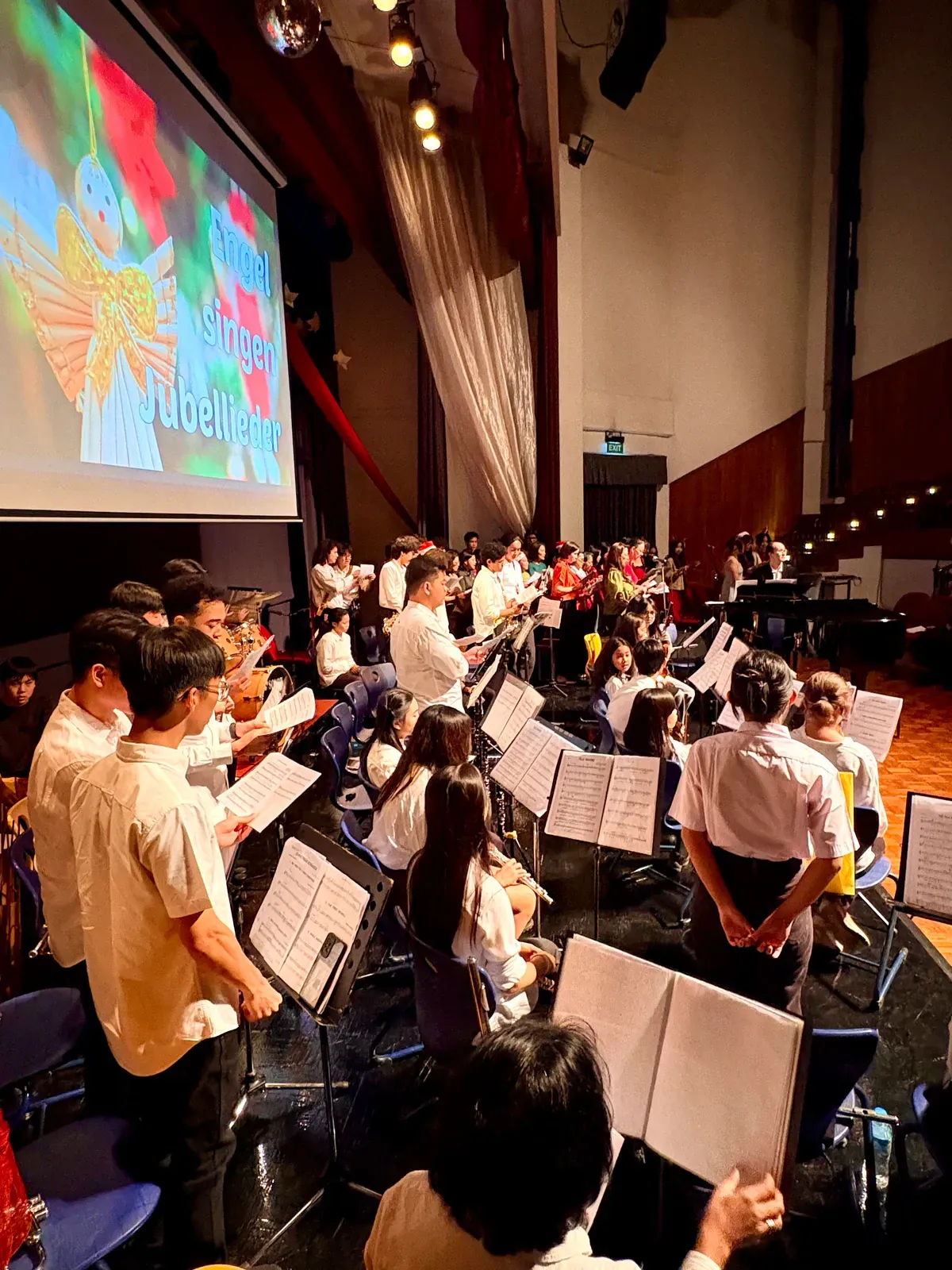 Di auditorium, Weihnachtsorchestra dan paduan suara menciptakan suasana yang indah, sementara di panggung hall, siswa dari Kindergarten hingga band sekolah menampilkan pertunjukan yang menawan, lucu, dan mengharukan. 🎶
