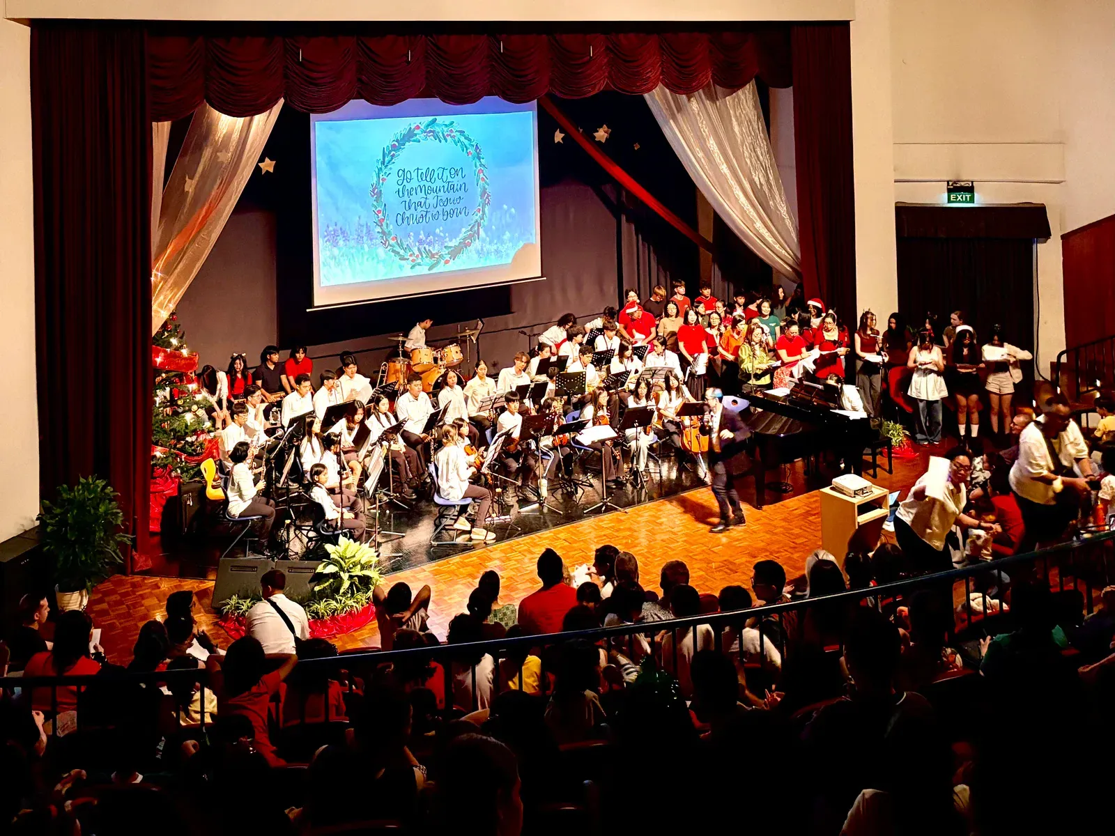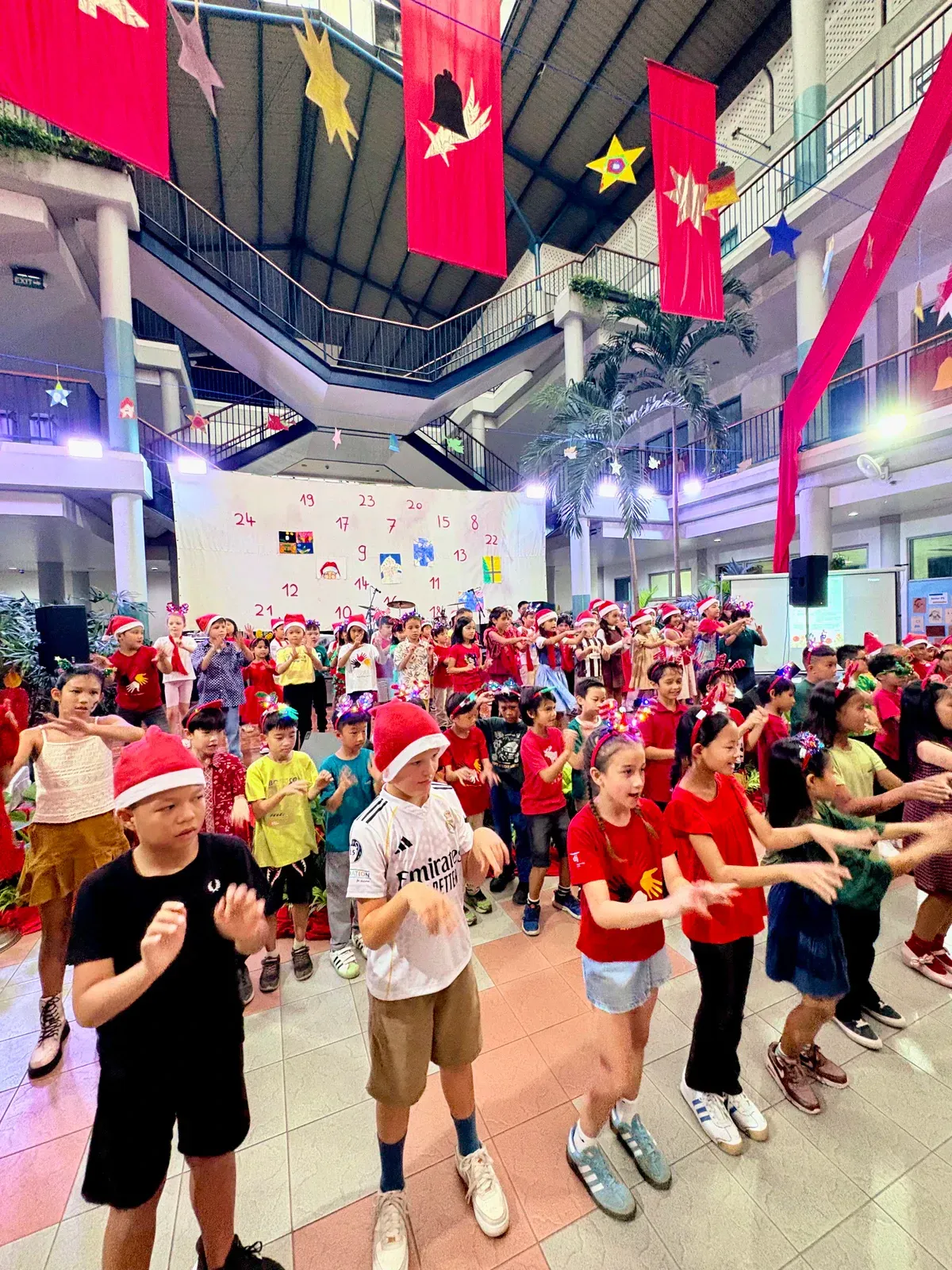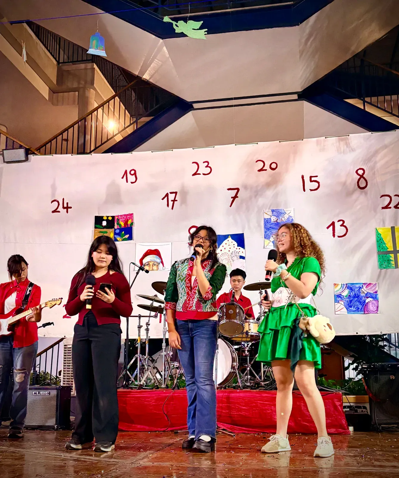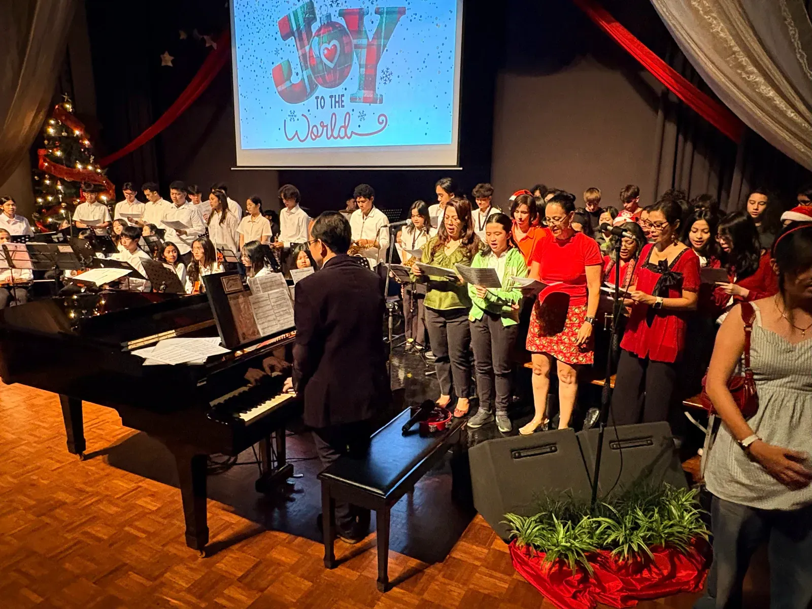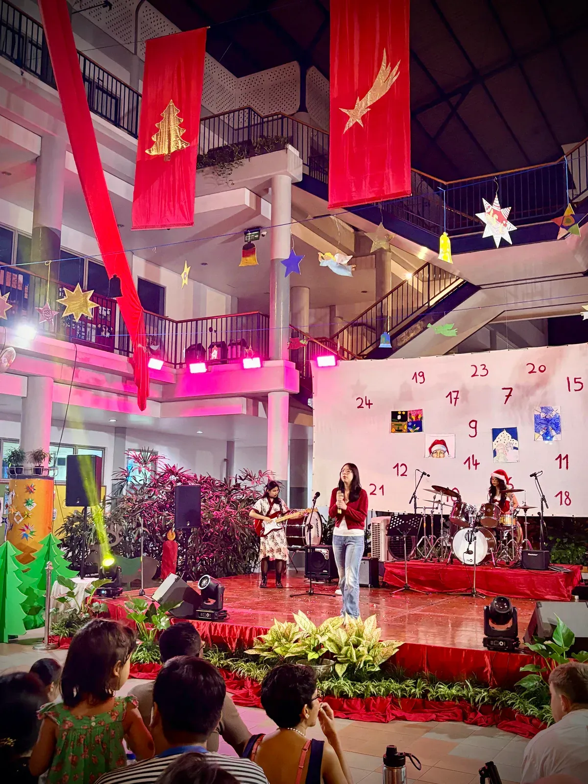 Di auditorium, Weihnachtsorchestra dan paduan suara menciptakan suasana yang indah, sementara di panggung hall, siswa dari Kindergarten hingga band sekolah menampilkan pertunjukan yang menawan, lucu, dan mengharukan. 🎶
