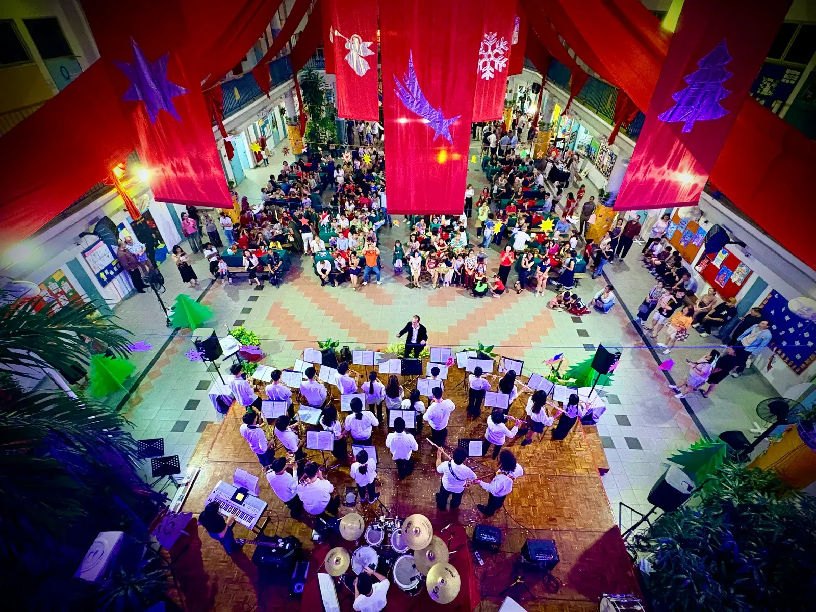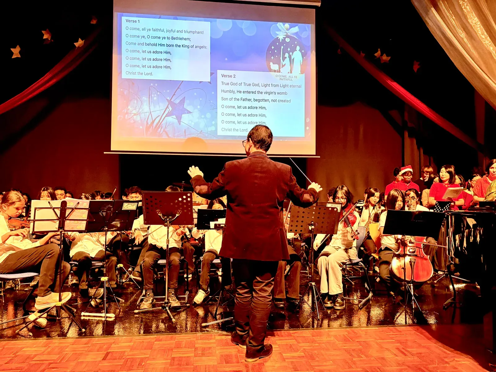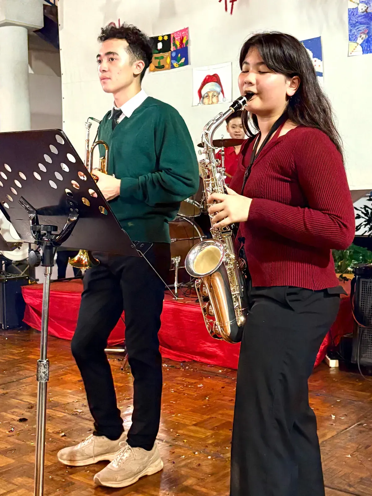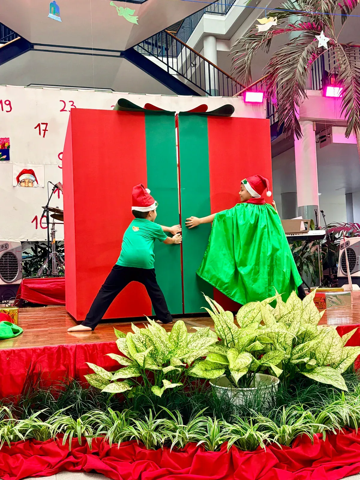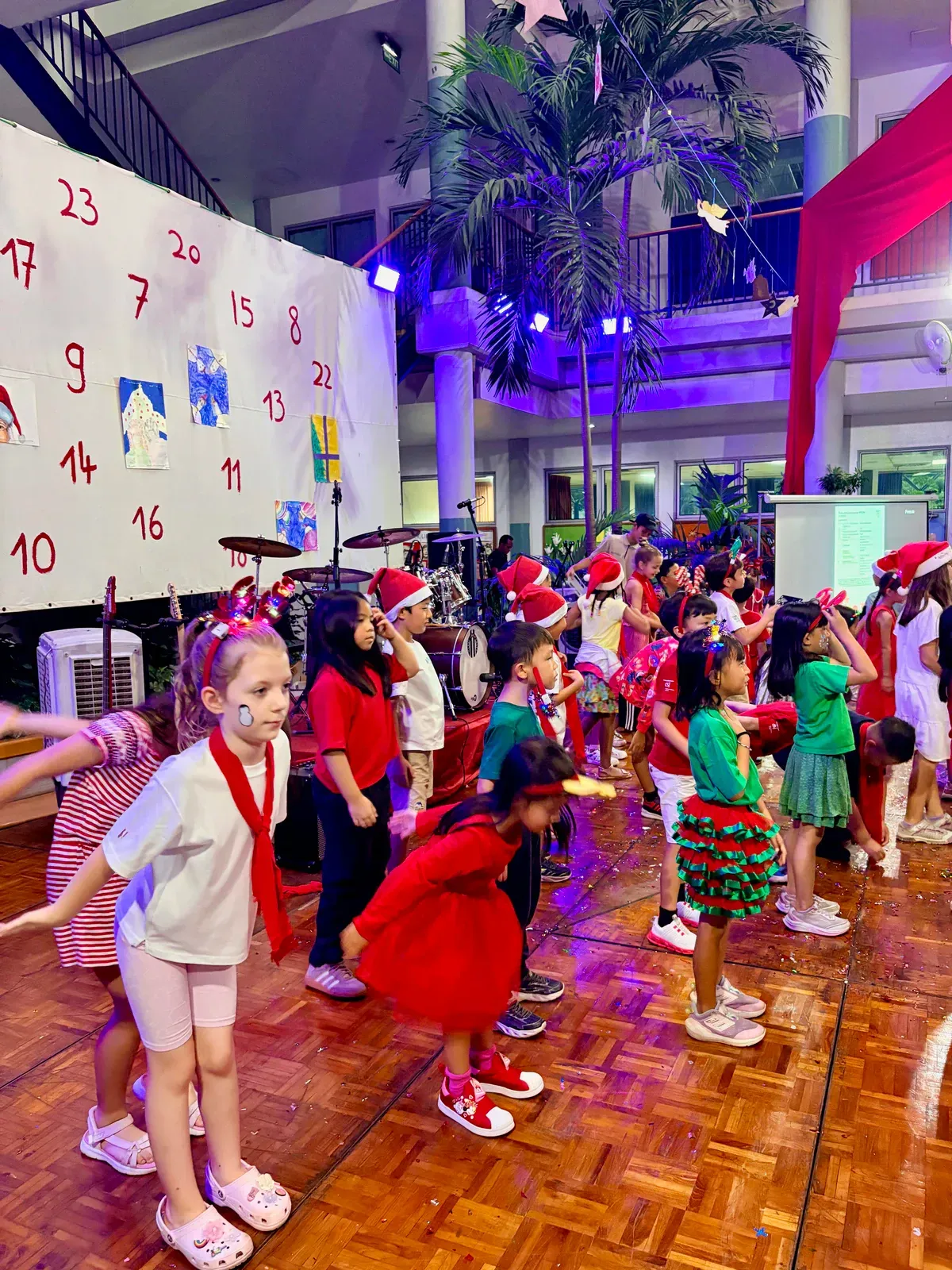Di auditorium, Weihnachtsorchestra dan paduan suara menciptakan suasana yang indah, sementara di panggung hall, siswa dari Kindergarten hingga band sekolah menampilkan pertunjukan yang menawan, lucu, dan mengharukan. 🎶