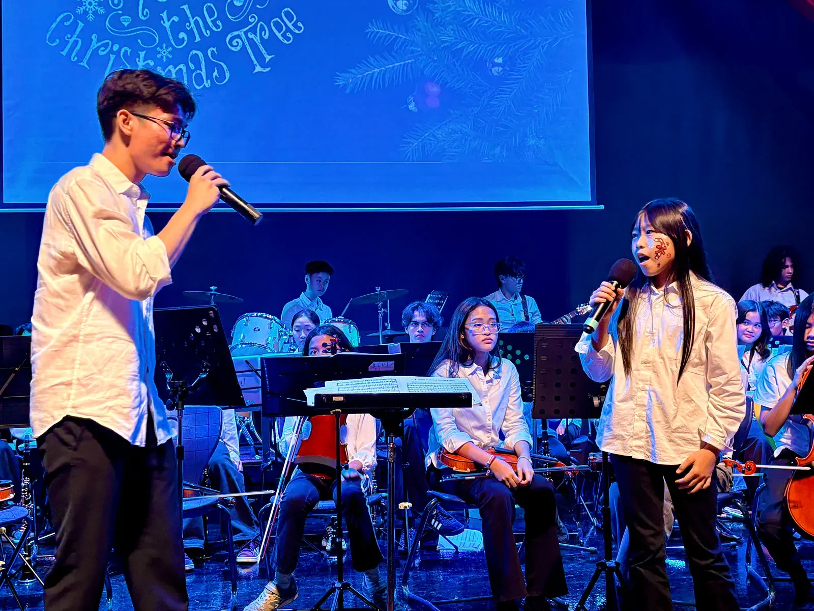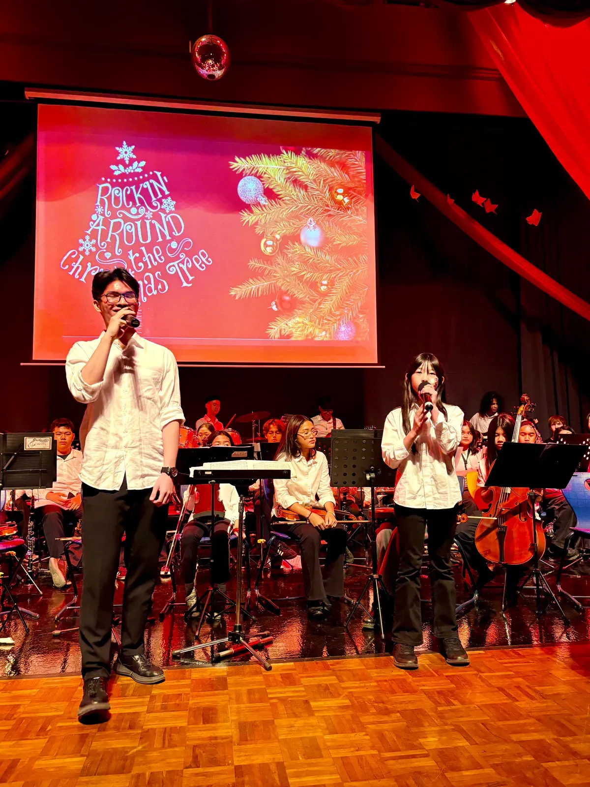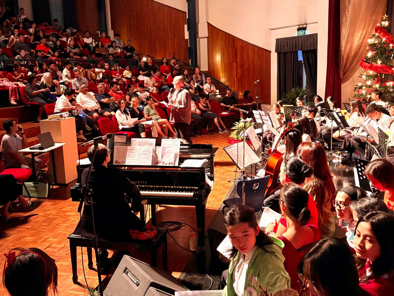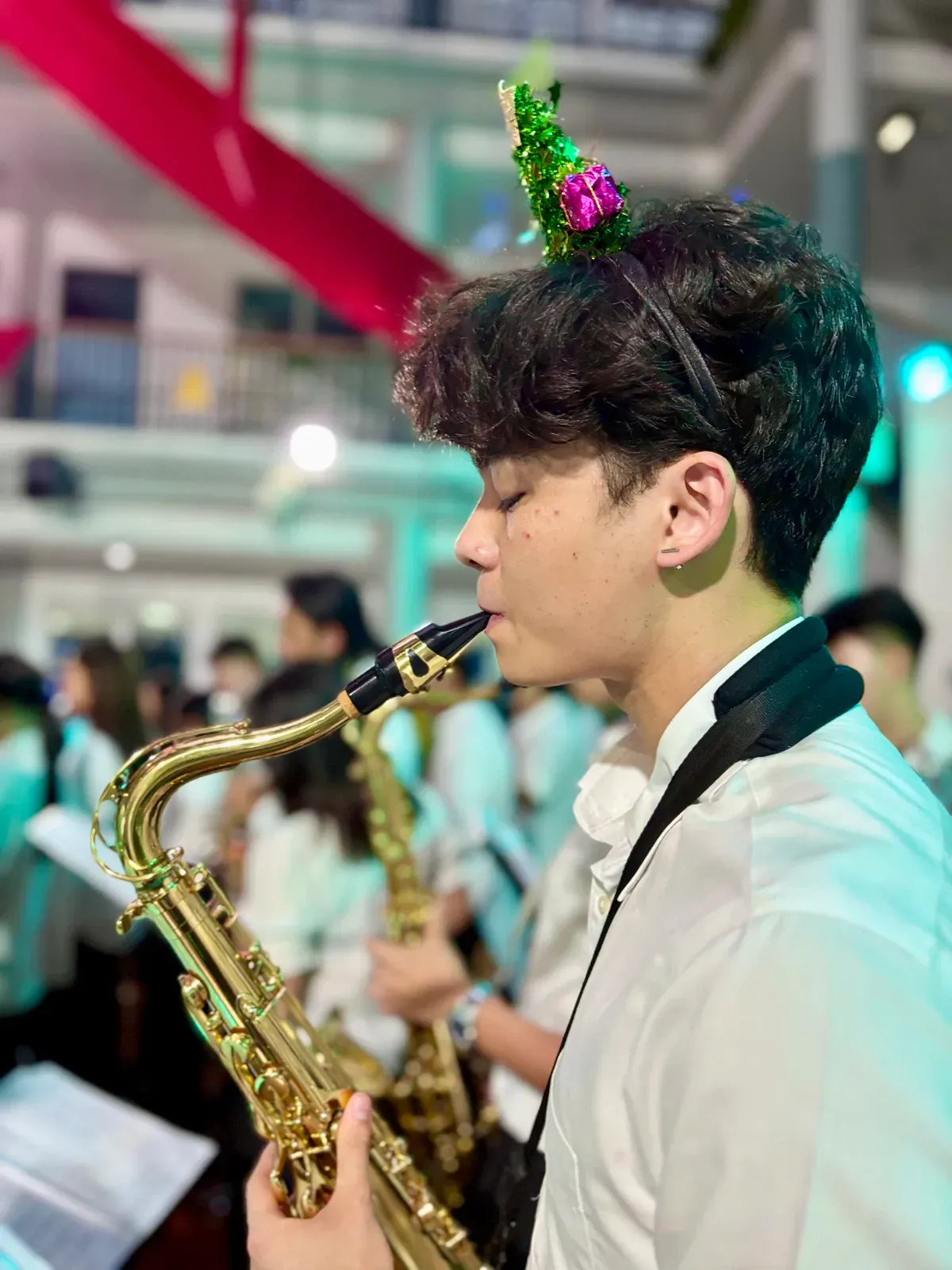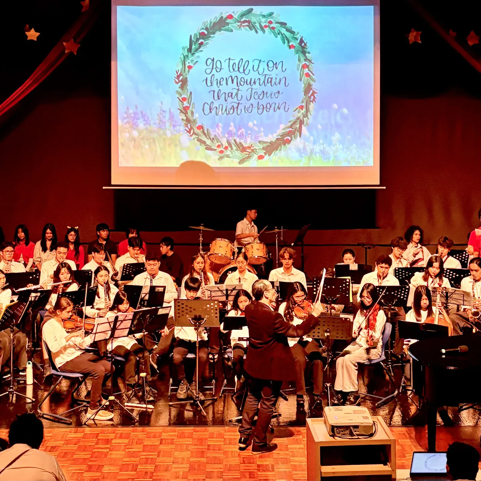 Di auditorium, Weihnachtsorchestra dan paduan suara menciptakan suasana yang indah, sementara di panggung hall, siswa dari Kindergarten hingga band sekolah menampilkan pertunjukan yang menawan, lucu, dan mengharukan. 🎶