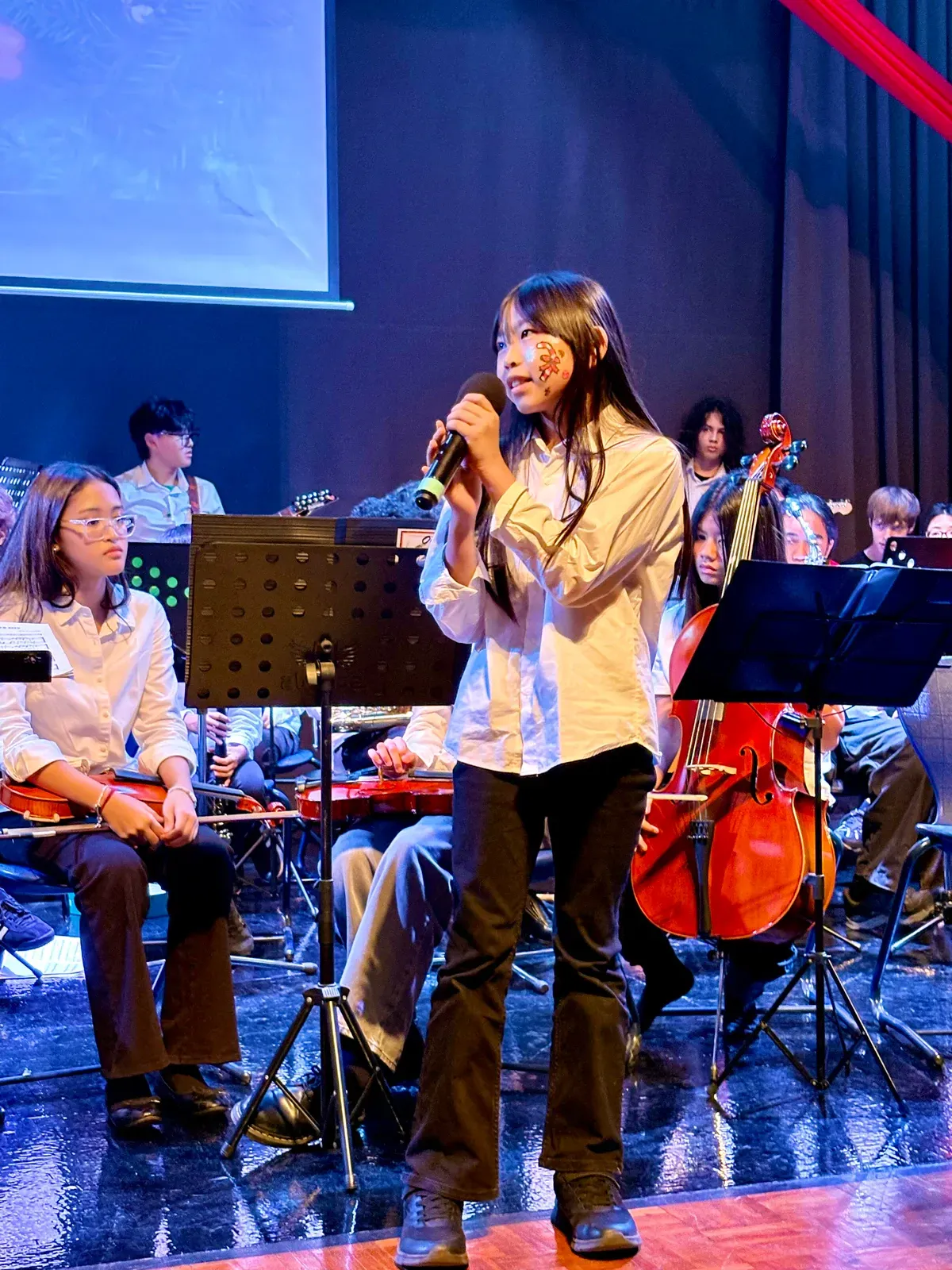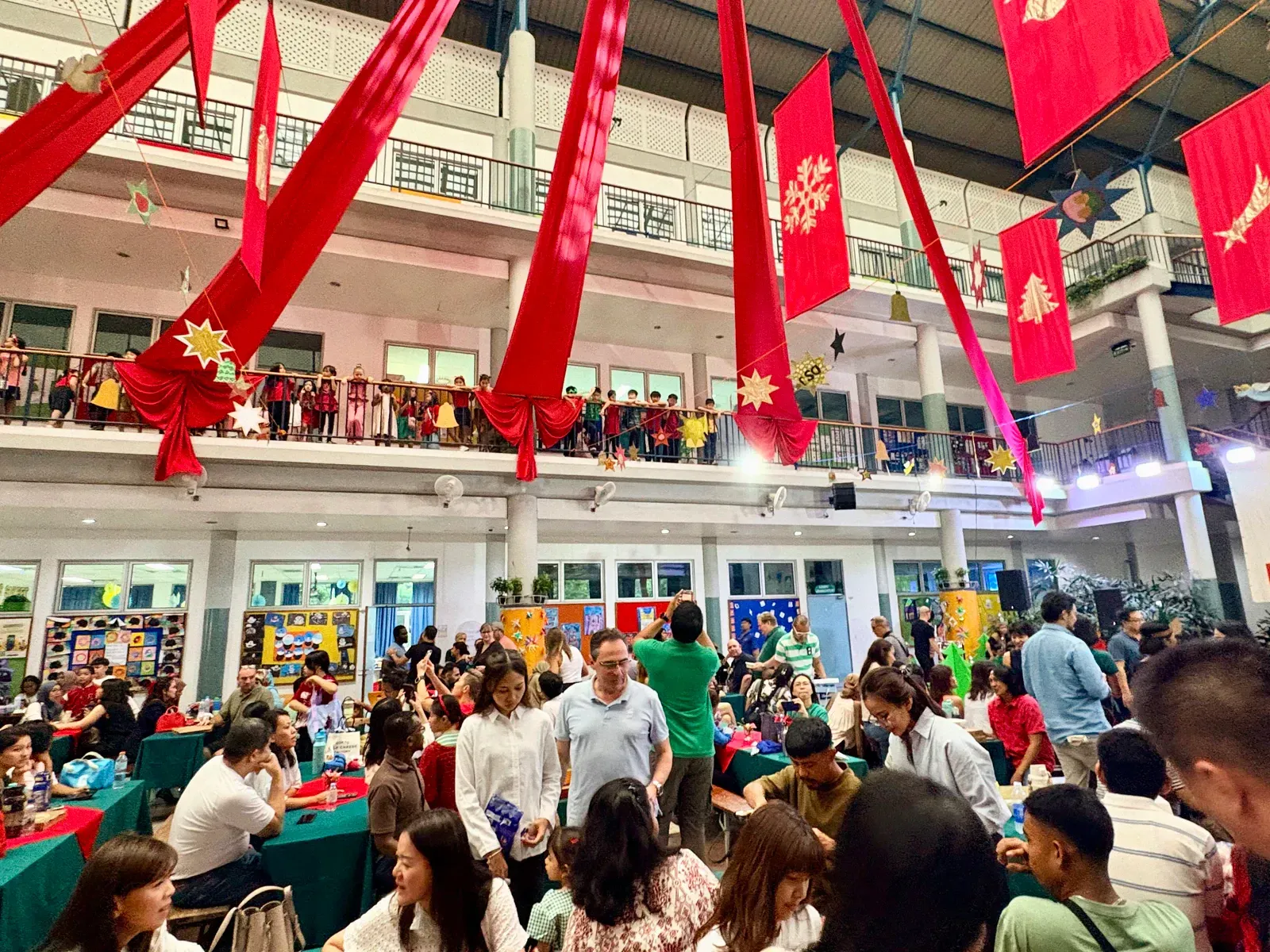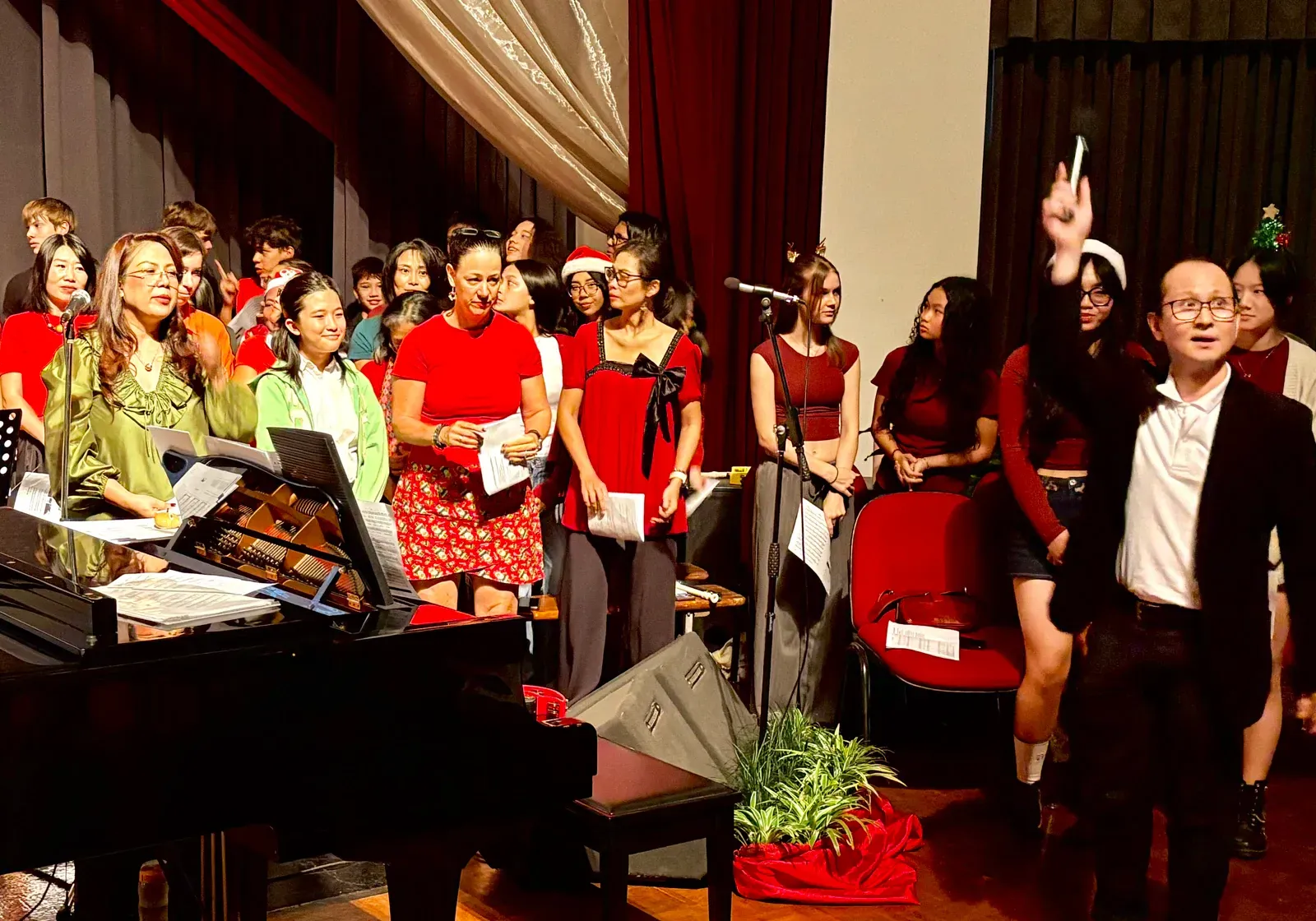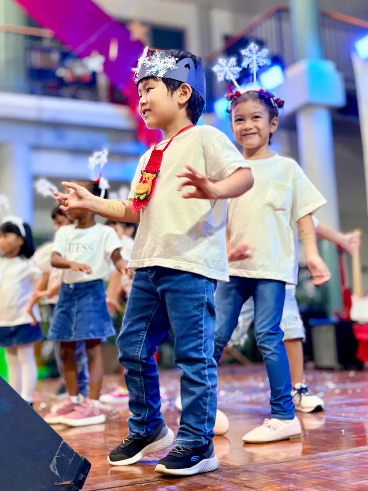 Di auditorium, Weihnachtsorchestra dan paduan suara menciptakan suasana yang indah, sementara di panggung hall, siswa dari Kindergarten hingga band sekolah menampilkan pertunjukan yang menawan, lucu, dan mengharukan. 🎶