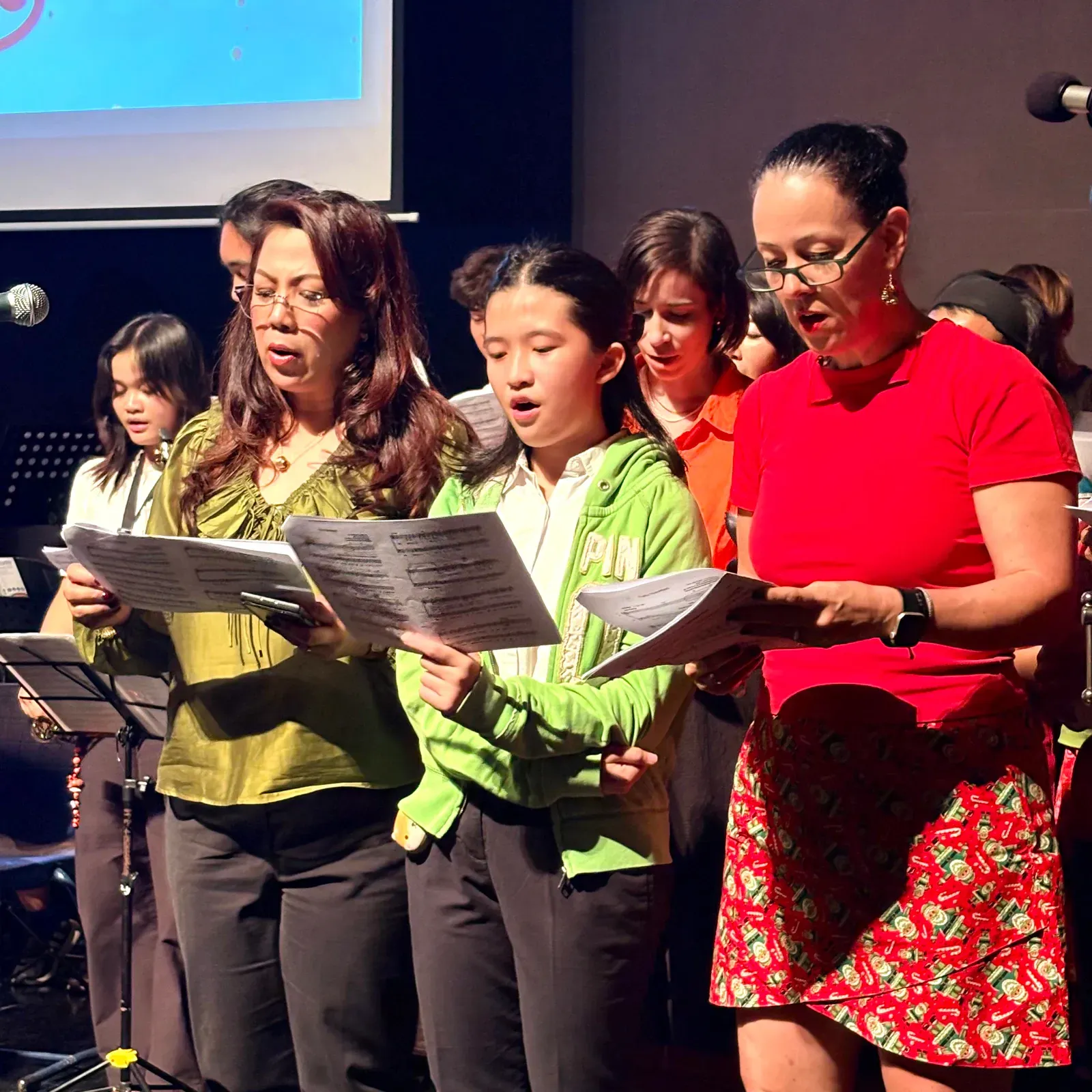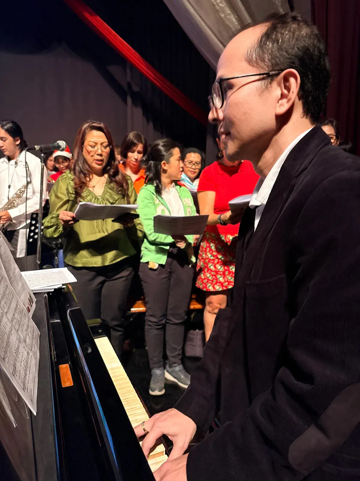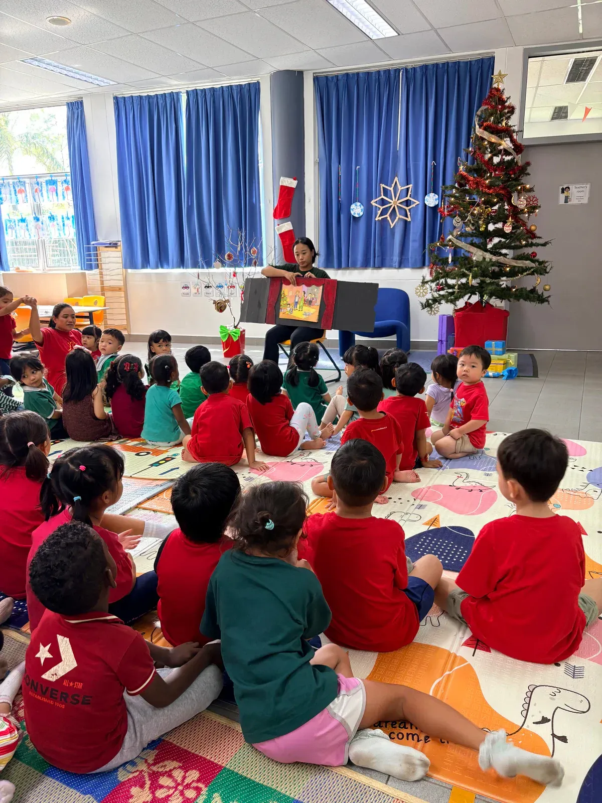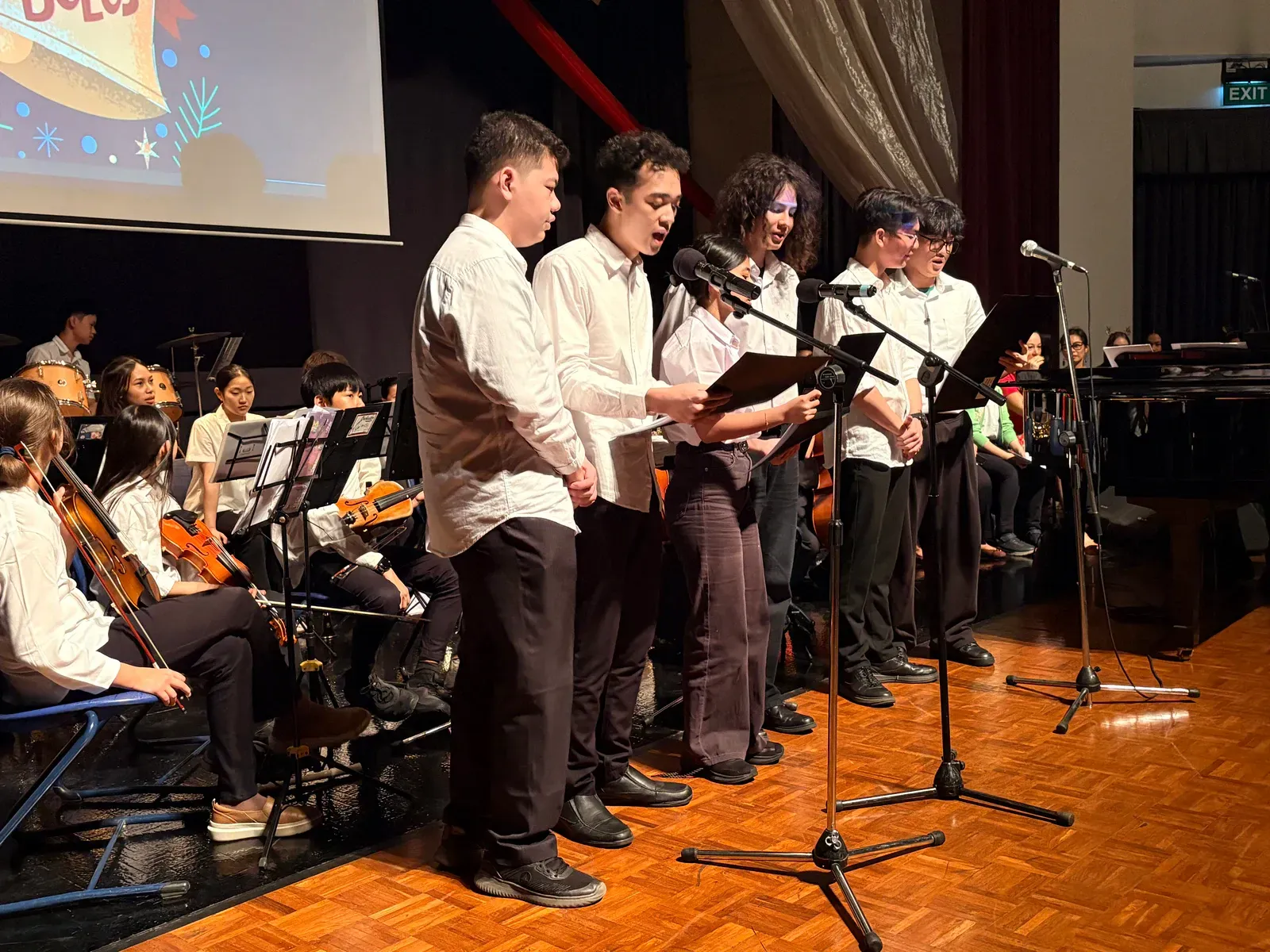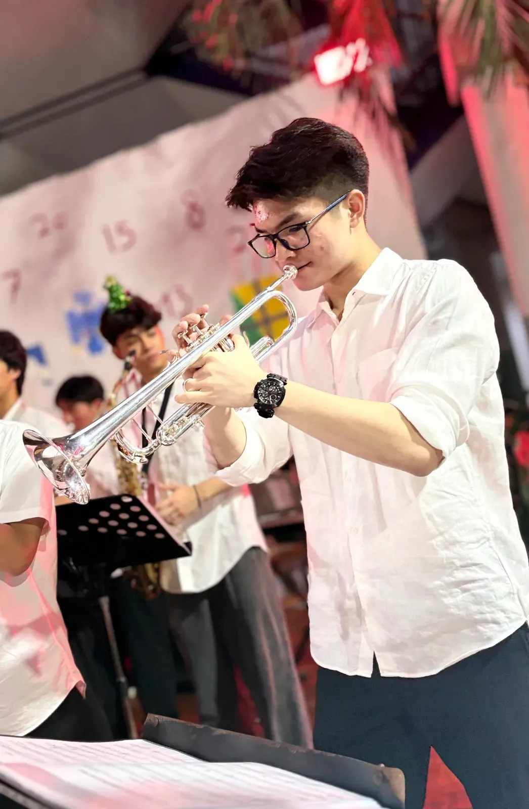 Di auditorium, Weihnachtsorchestra dan paduan suara menciptakan suasana yang indah, sementara di panggung hall, siswa dari Kindergarten hingga band sekolah menampilkan pertunjukan yang menawan, lucu, dan mengharukan. 🎶