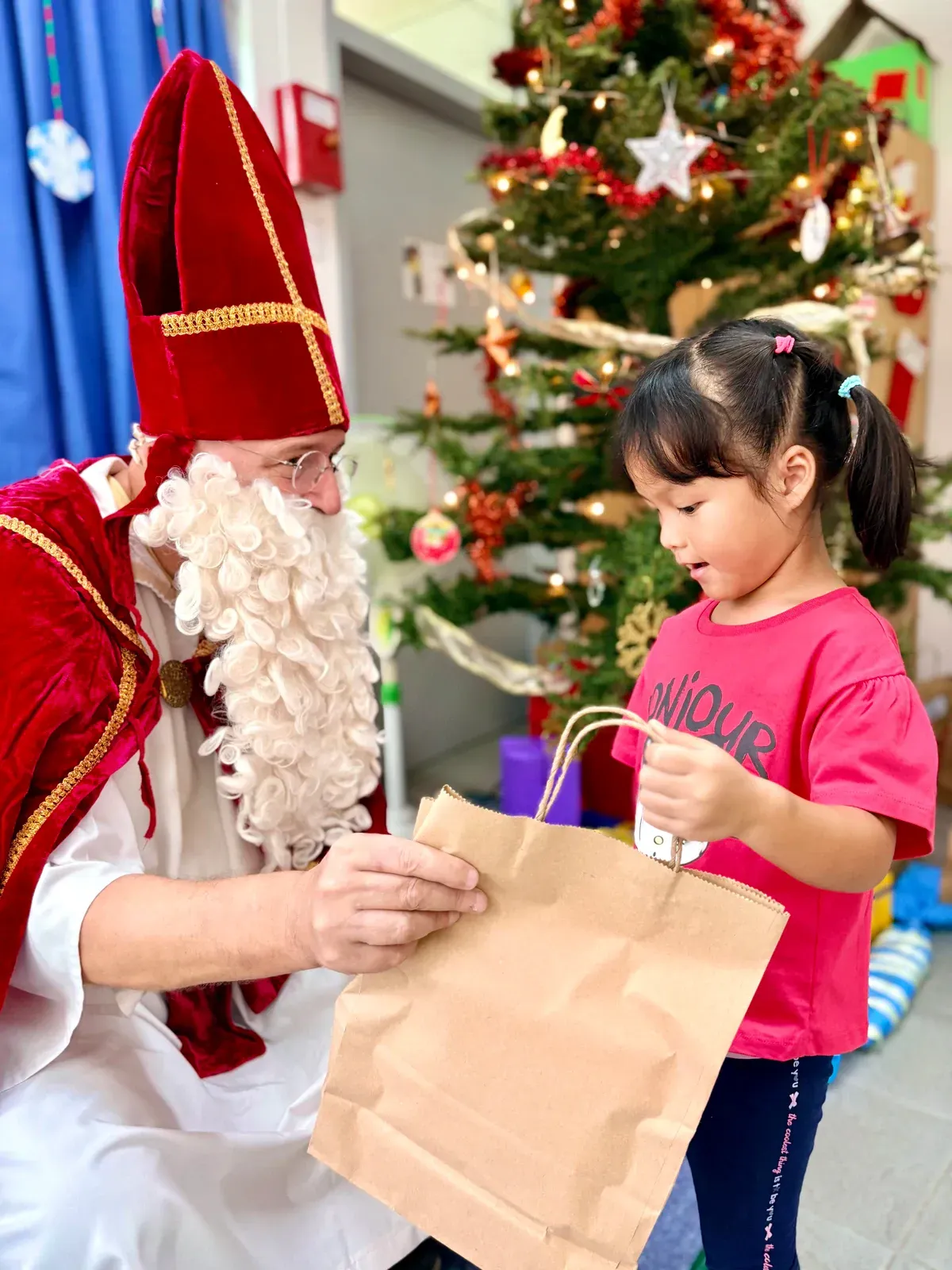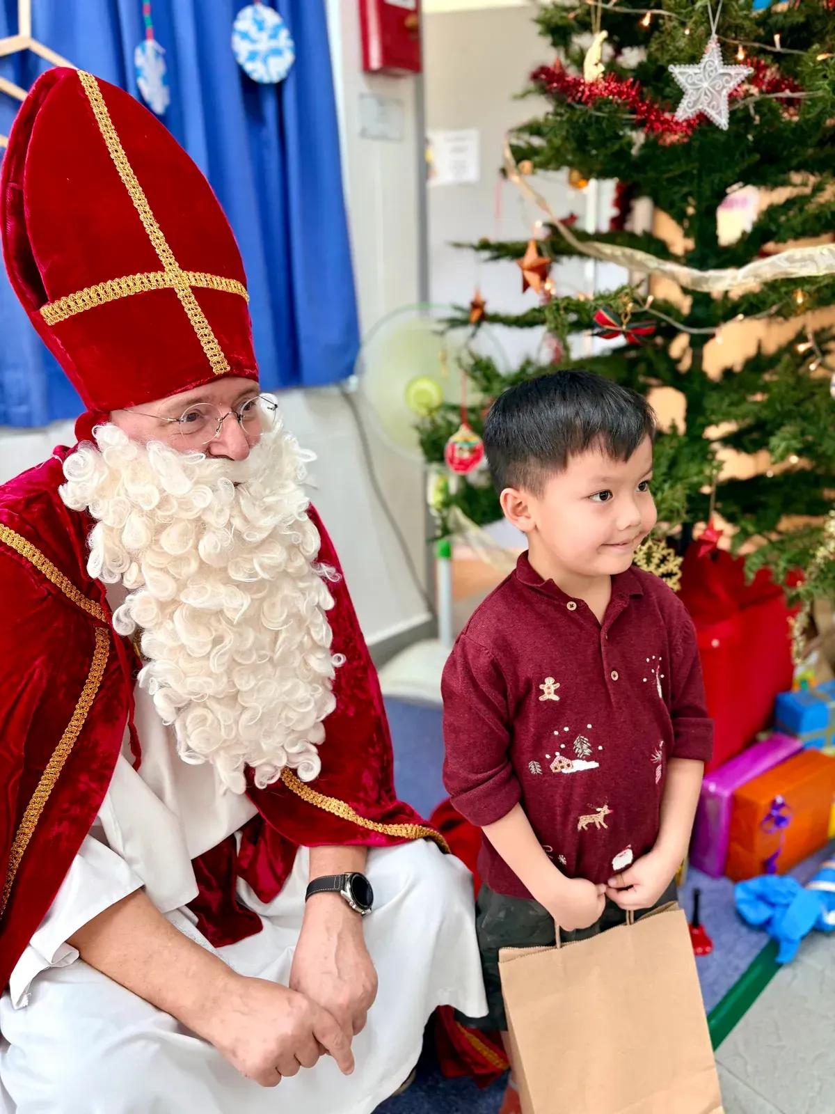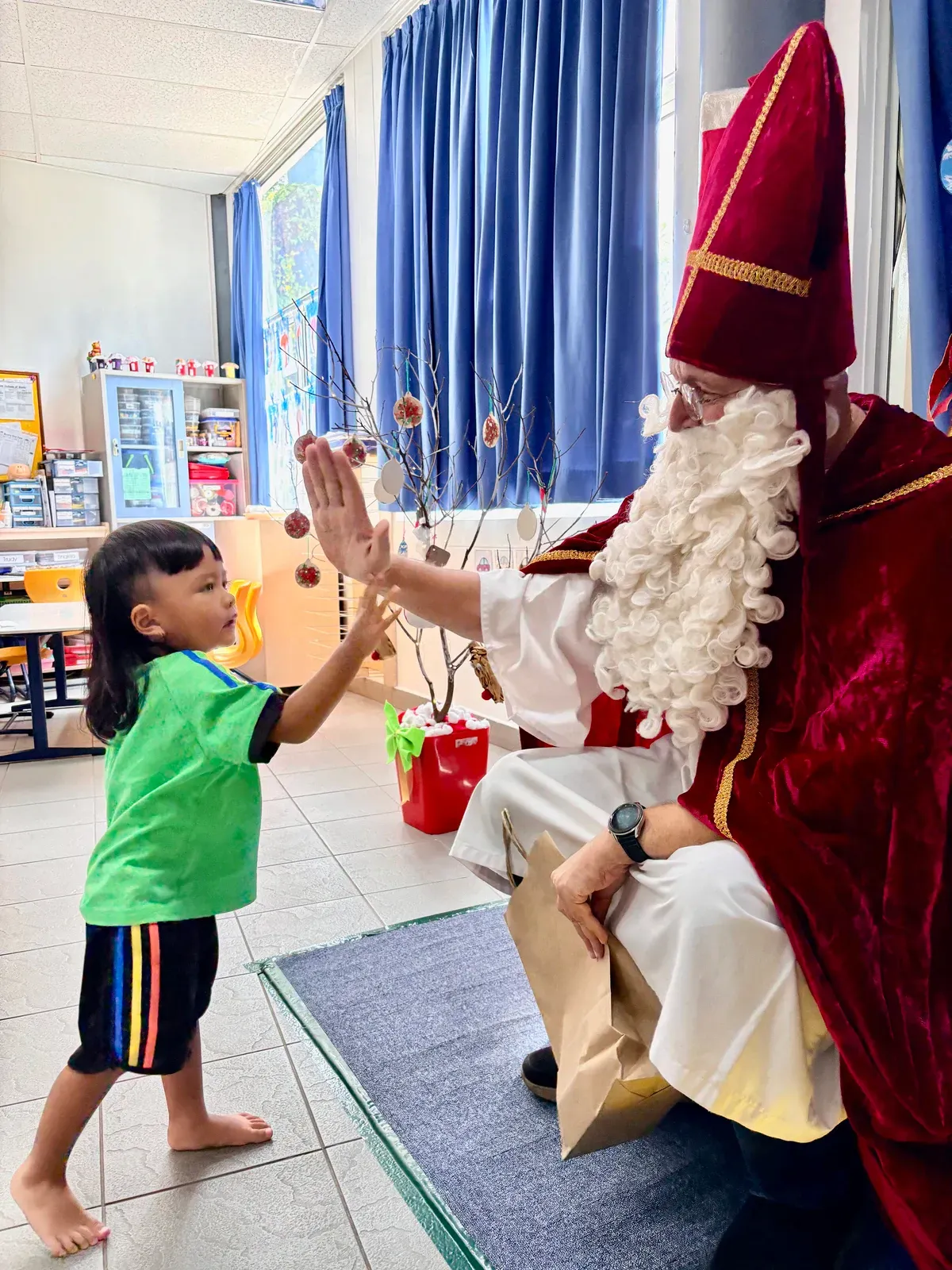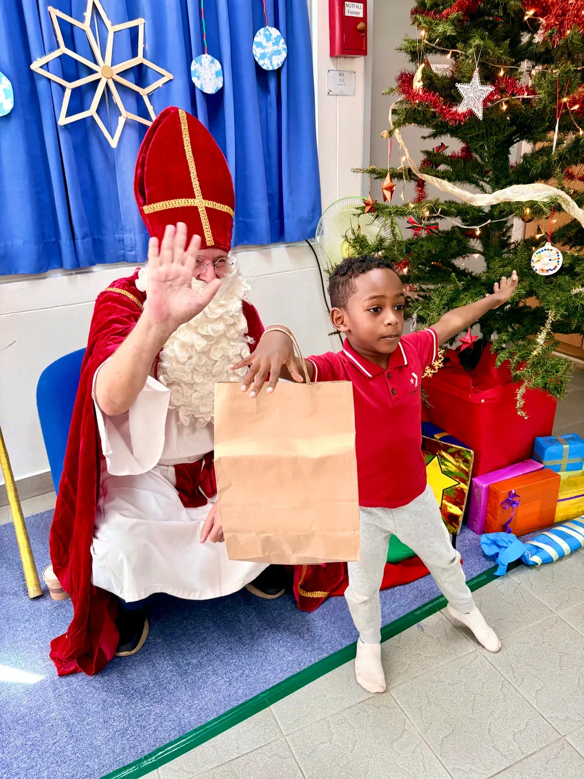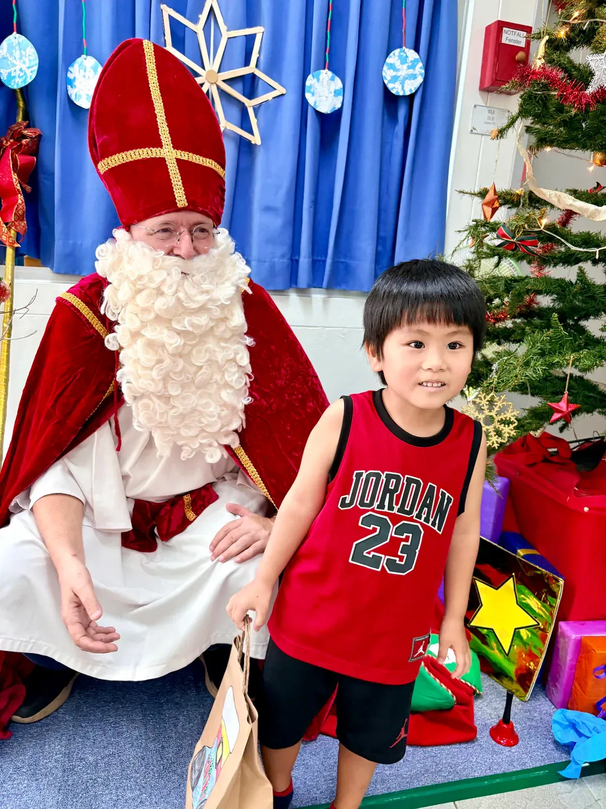 Anak-anak Preschool kami juga mendapat kesempatan bertemu dengan Nikolaus – sebuah kunjungan yang sangat ditunggu-tunggu. Dengan mantel merah khasnya dan karung penuh kejutan, ia memanggil setiap anak maju satu per satu. 🎁