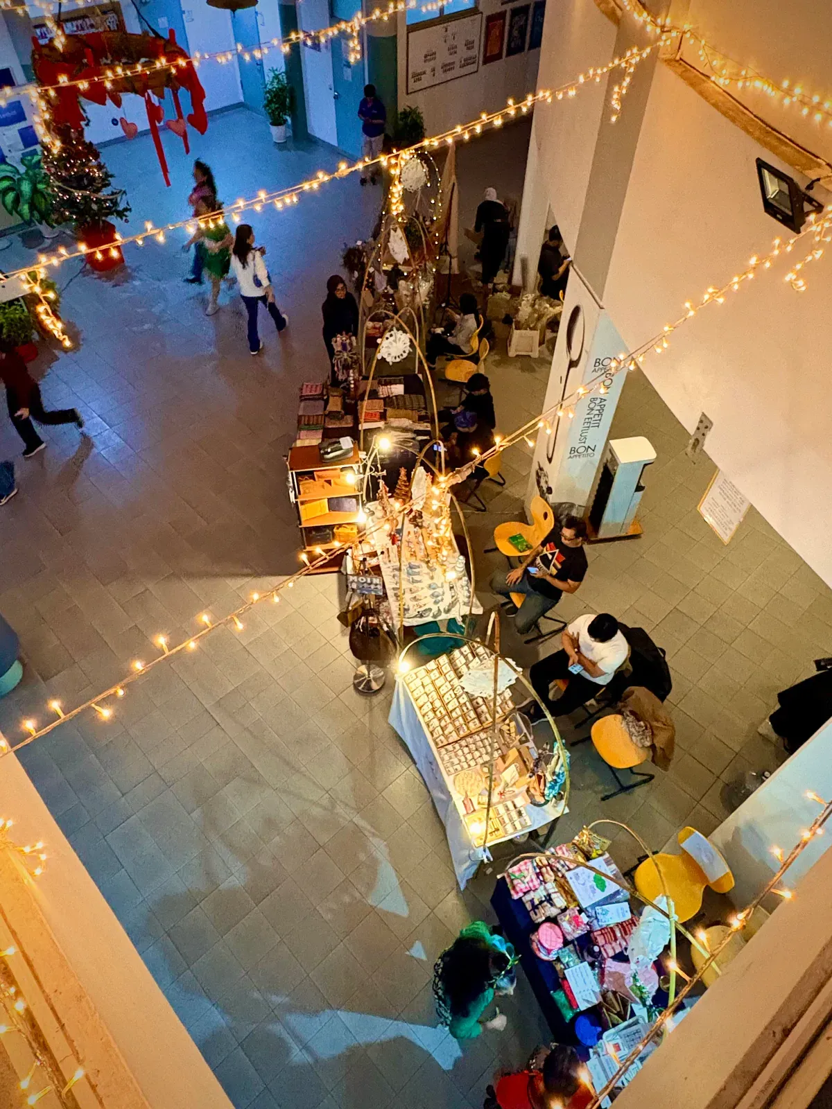 Kue, kue kering, Bratwurst, Glühwein, dan hidangan favorit Indonesia menciptakan perpaduan sempurna antara suasana rumah dan semangat Natal. Anak-anak berpindah dari satu stasiun kerajinan ke stasiun lainnya, menghias tato Natal, dan membuat dekorasi DIY kecil – sungguh ada sesuatu untuk semua orang. ✂️⭐️